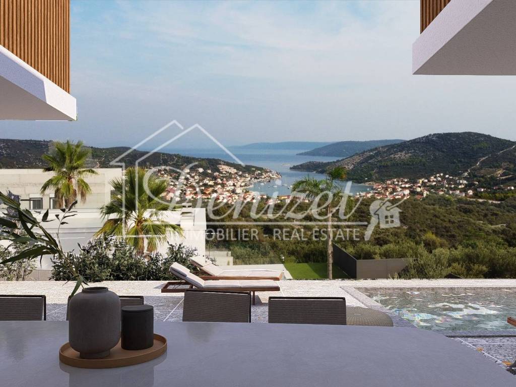 Nekretnina se nalazi u mirnom okruženju modernih obiteljskih vila, što je čini izvrsnim izborom kako za privatni odmor i stanovanje, tako i za investiciju u turistički najam. Udaljenost od mora iznosi 1,6 km, od mjesta Marina 4 km, od grada Trogira 18 km, dok je zračna luka Split udaljena 23 km.