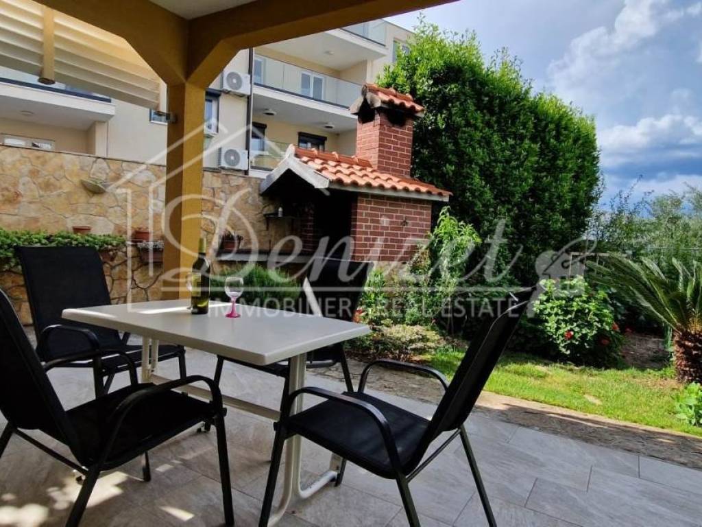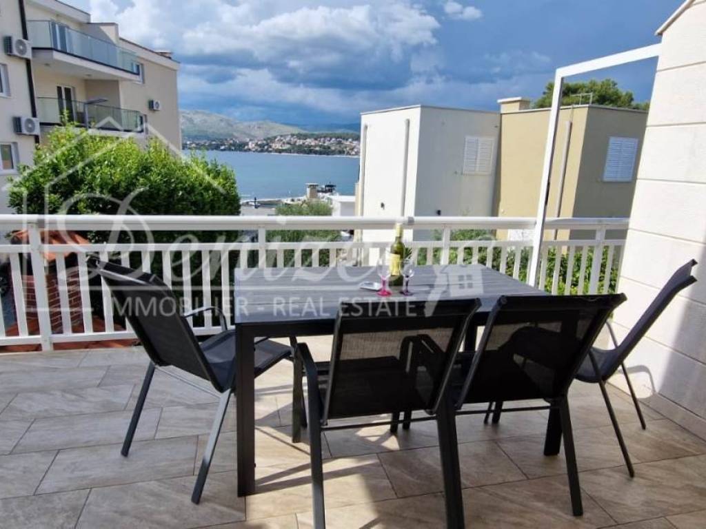 The house has a total gross construction area of 423 m2, and is located on a plot of land of 426 m2. It contains a total of 5 residential units distributed over three floors: ground floor, first and second floor. The floors are connected by an external staircase.On the ground floor of the house there are 2 one-bedroom apartments, a storage room and a garage. The apartments on the ground floor have access to a covered terrace and a beautifully landscaped and maintained green garden. There is also an outdoor grill in the garden.The first floor consists of one-bedroom and two-bedroom apartment. Both apartments have access to a spacious terrace with a sea view.On the second floor there is a spacious two-bedroom apartment with access to a terrace with a beautiful sea view. There is enough parking space in front of the house to park 4 to 5 cars.The house is sold fully furnished. It is maintained and well equipped. The house is heated with heating oil, and each apartment also has an air conditioner. A solar tank system designed to accumulate and heat water using solar energy is installed in the boiler room. Solar panels are installed on the roof of the house.The house is in an excellent location, only 50 m from the sea and a pebble beach. All essential facilities for life are nearby. The house is rented in the summer for tourist purposes and achieves excellent results. Because of all the above, this property is an excellent investment.It is only 4 km from the center of Trogir, 10 km from Split airport, and 30 km from the center of Split.