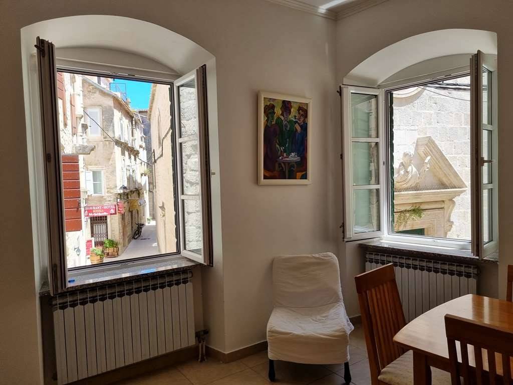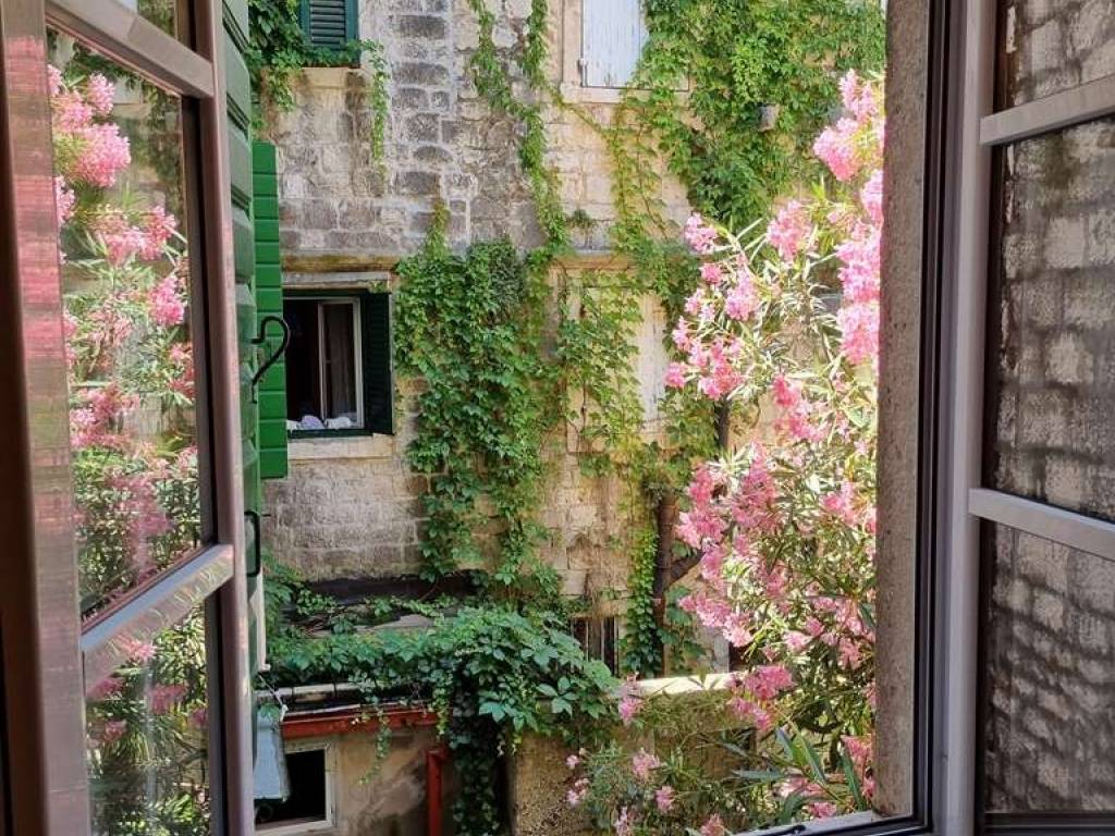 Exclusive and special offer of our agency. A very interesting offer below the market price. Trogir center, for sale is a property with a total area of 231 m2 consisting of two furnished apartments and a tavern located in the old town of the UNESCO city. The apartments are located on the first floor of a stone house, the total area of apartment S1 is 65.33 m2 and consists of a living room and kitchen, an entrance hall, 2 bedrooms and a bathroom. Apartment S2 with a total area of 62.83 m2 contains: entrance hall, living room with kitchen, 2 bedrooms and bathroom. The tavern has an area of 103 m2 and is located on the ground floor of the house. The property is located in an excellent location. Distance from the Trogir waterfront 100 m, from the city beach 1 km, from the international airport Split 5.5 km. The real estate in question is a co-owned part of the stone house, there are a total of 3 families as tenants in the house.