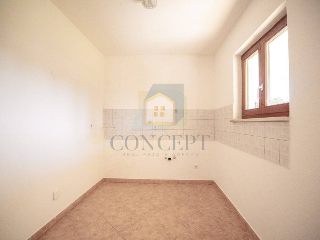 The first unit is located on the ground floor and has an area of 60.59 m, along with a covered terrace of 21.19 m, a basement of 7.66 m, and a garden measuring 306.4 m. The apartment consists of an entrance hallway, a bathroom, a bedroom, and a spacious living room with a kitchen and dining area, where an additional bedroom can be created.