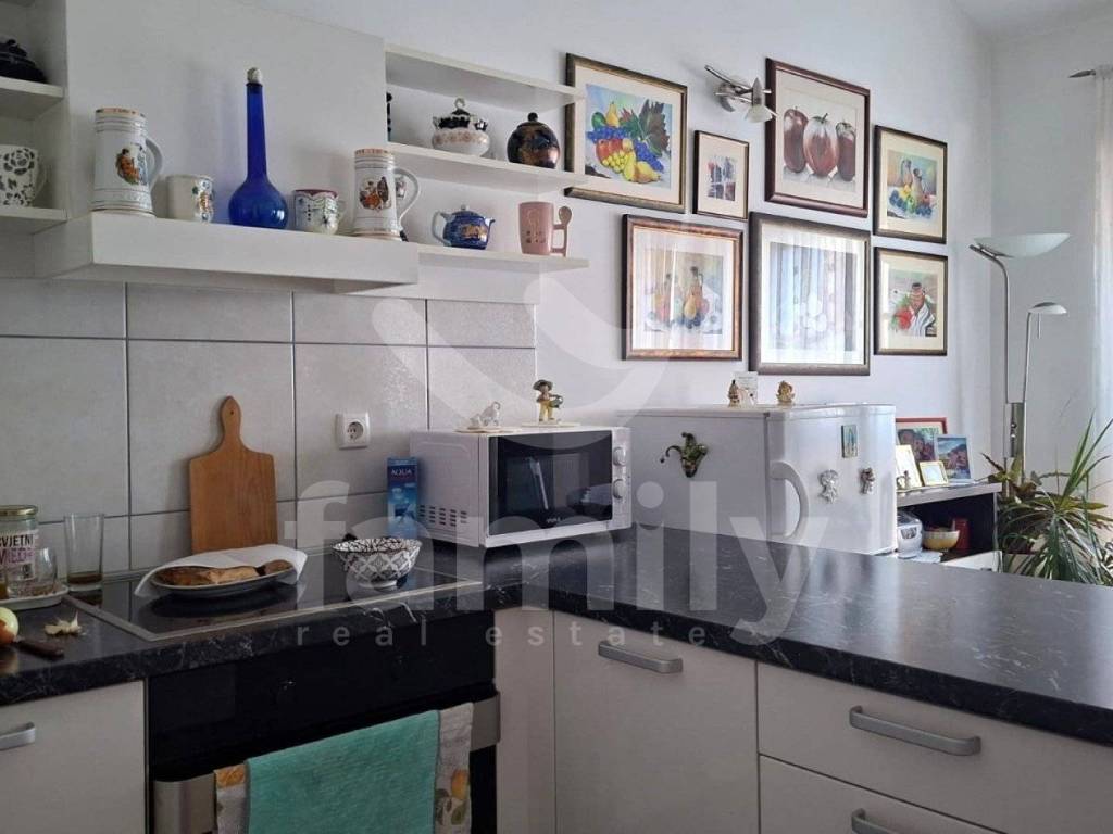 In this beautiful city, in an attractive location, there is this beautiful 50 m2 apartment. The apartment is located on the 1st floor of a residential building with a total of two floors. The building is well-maintained and of recent quality construction. The apartment consists of a hallway, kitchen with dining area, living room, bedroom, bathroom and loggia (which also has an additional kitchen). The apartment is equipped with new PVC joinery, the floors are covered with laminate and ceramic tiles. Heating and cooling are provided by air conditioning. The apartment is located in a quiet and well-maintained neighborhood, ideal for a peaceful family life and due to its excellent location and a good investment for year-round rental or tourist rental. Parking is in a public place near the building. In the immediate vicinity there are shops, a school, a kindergarten, public transport and all other necessary facilities.