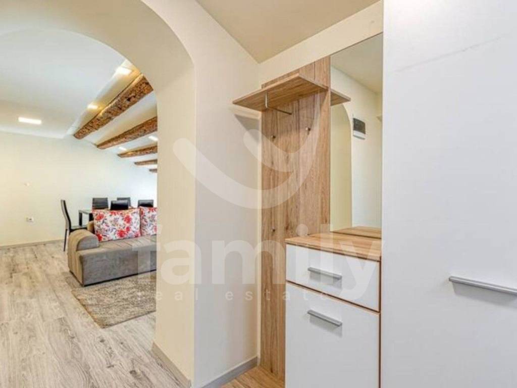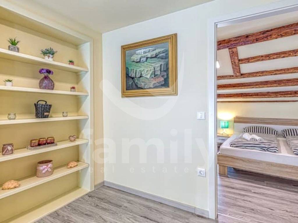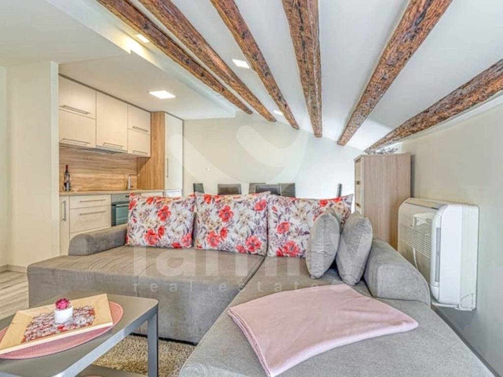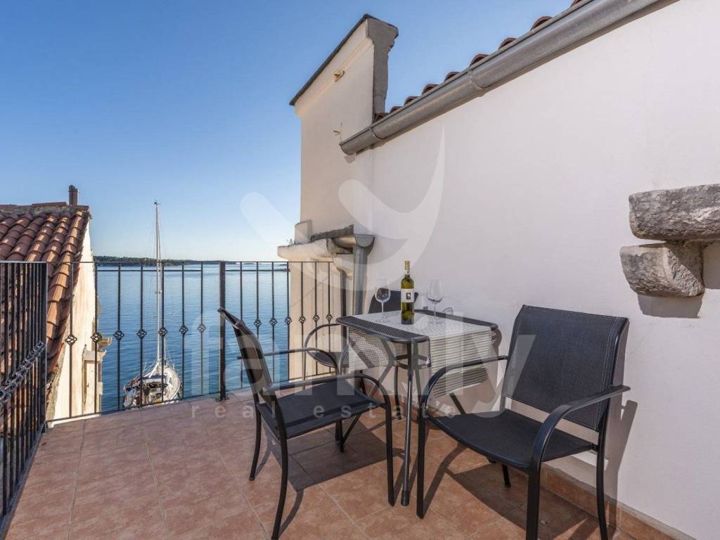 The apartment is located in Poreč, first row to the sea, on the third floor and has an area of 48 m2. The apartment consists of an entrance hall equipped with a shoe rack, a bright living room connected to the kitchen and dining area, one comfortable bedroom, a bathroom and an exit to the terrace with a beautiful view of the sea. The apartment is fully equipped with PVC joinery and one air conditioning unit. The floors in the property are equipped with quality laminate and ceramics. There is also the possibility of purchasing the neighboring apartment, which would allow the entire third floor to be used.