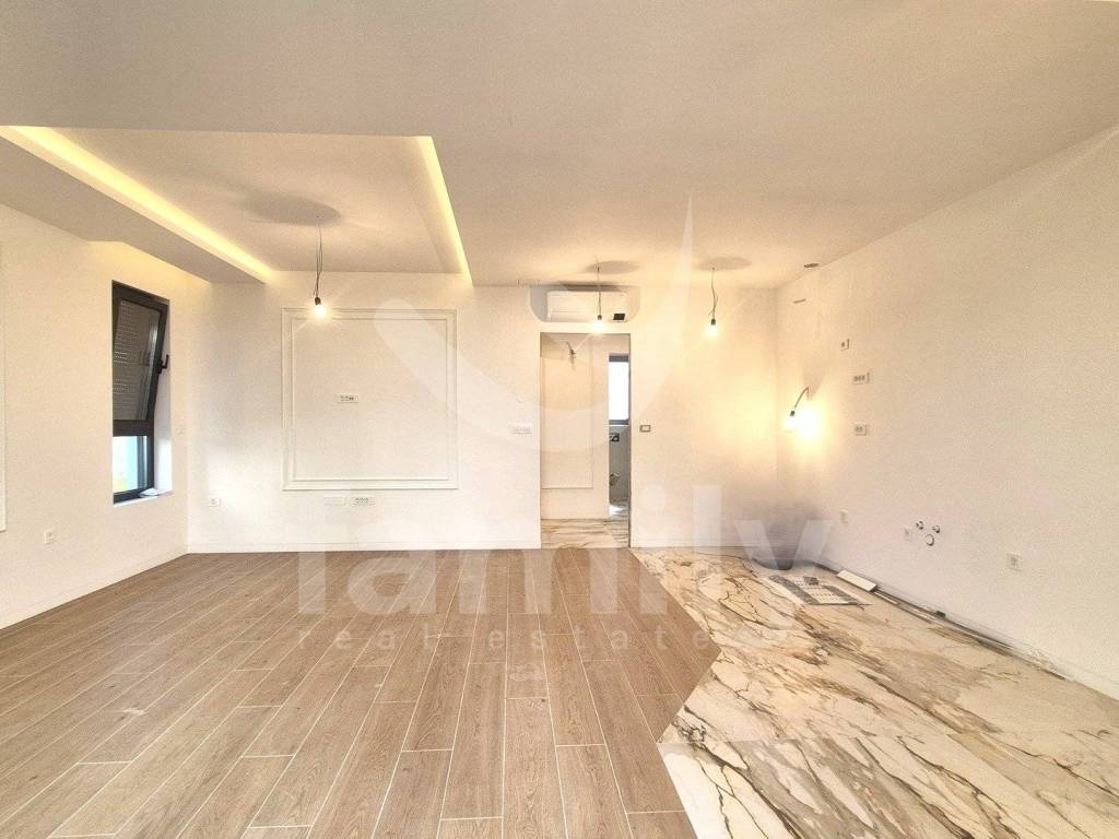 This high-quality two-bedroom apartment in a new building on the ground floor of 54 m2 is located in Štinjan. The apartment consists of an entrance hall, a bright and comfortable living room connected to the dining room and open-space kitchen and access to a covered terrace and garden, one bedroom and a bathroom. The floors are covered with high-quality parquet as well as Gardenia and Marazzi ceramics, and three-layer ALU joinery with electrically operated roller shutters and a security entrance door has been installed. Electrically operated curtains have also been installed. The heating and cooling system is regulated by two WindFree air conditioning units and underfloor heating. The property is also equipped with integrated lighting, which contributes to additional comfort.