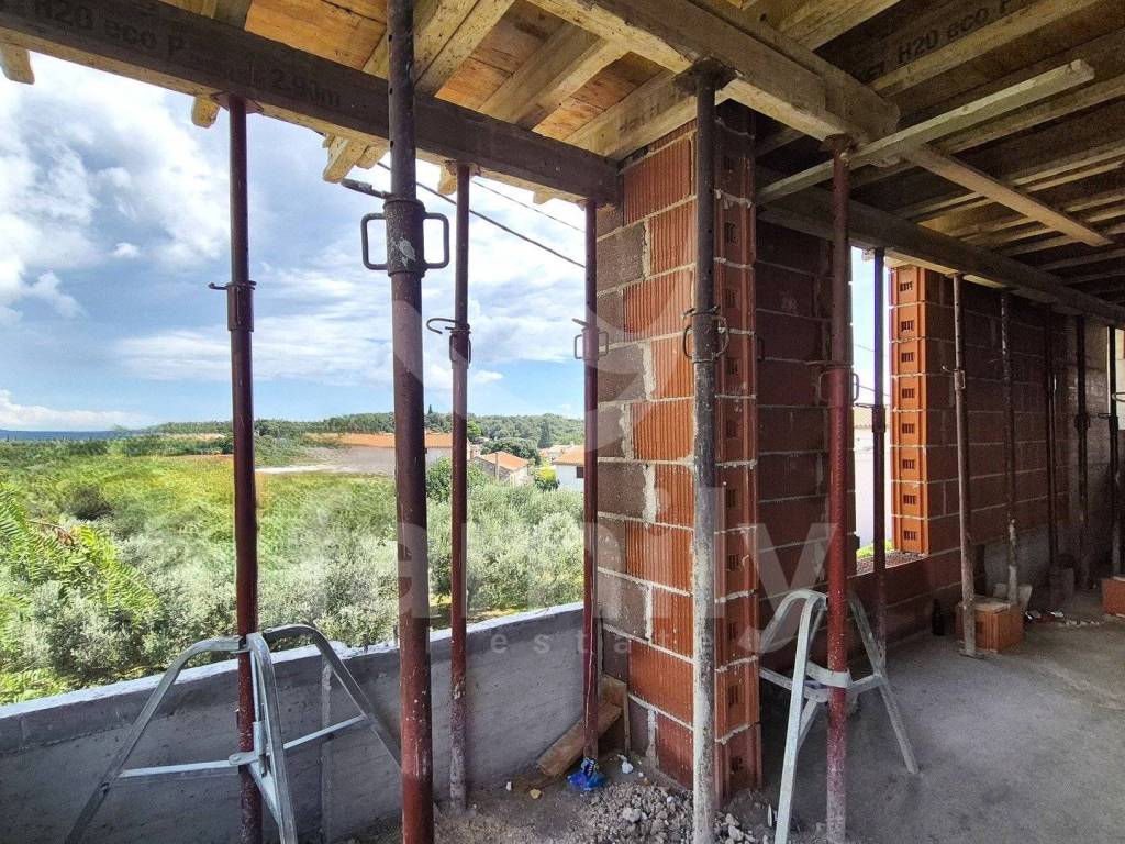 This penthouse of high-quality new construction by a proven investor with a total of 4 residential units is located in Štinjan. This apartment is located on the second floor and has an area of 110 m2 with one parking space. The apartment consists of an entrance hall, a very spacious and comfortable living room connected to the kitchen and dining room of the open space concept of 50 m2 in which a sliding glass wall with electric shutters will be installed through which access to the covered terrace will be provided, three comfortable bedrooms with extremely large living openings and two bathrooms. The building itself is equipped with reinforced load-bearing walls as well as a fire wall between the properties and 10 cm thick thermal insulation is planned. The heating and cooling system is planned to be regulated via an air conditioning unit and underfloor heating will be implemented throughout the building with thermostats in each room. The apartment will also be equipped with high-quality PVC joinery in anthracite color with triple-layer glass with 9 gas chambers.
