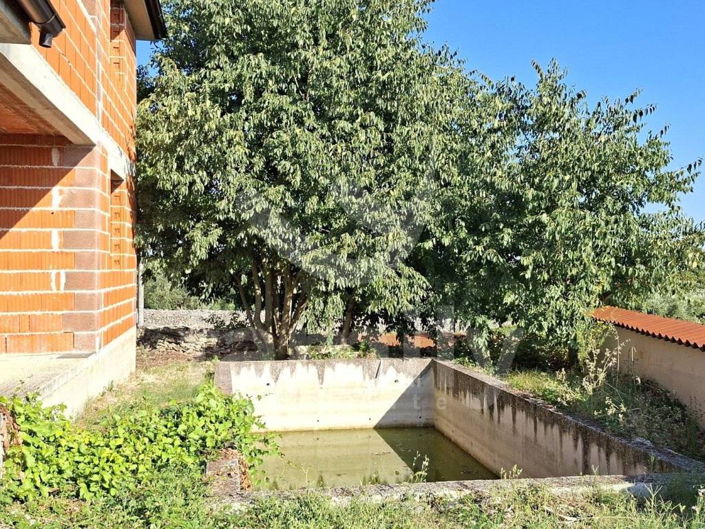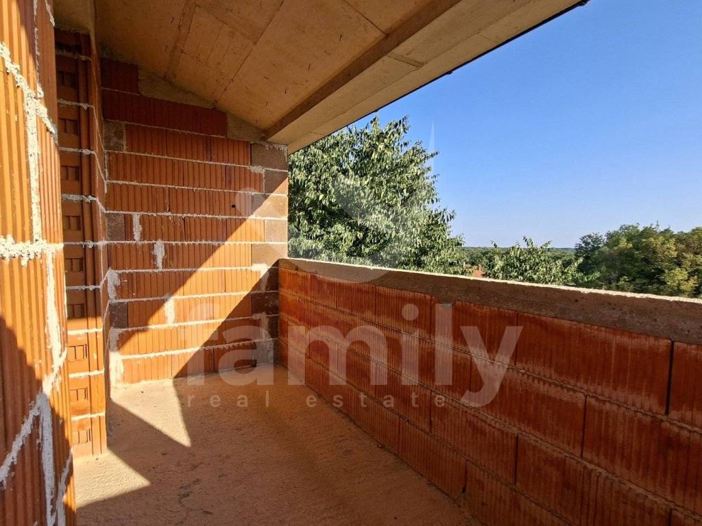 Within the municipality of Marčana, in a quiet place not far from Filipana, a comfortable family house in the unfinished stage is for sale. The house is spread over two floors and has a living area of 178 m2 with a garden of 394 m2. The ground floor of the property consists of an entrance hall, a spacious living room with access to a covered terrace, a kitchen connected to the dining room, as well as two storage rooms and a toilet. Internal concrete stairs leading to the first floor of the property consist of three bright bedrooms, one of which is en-suite, and the next two rooms have access to a spacious terrace and an extra bathroom. The garden also includes a swimming pool and a garage for two cars or a comfortable workshop.