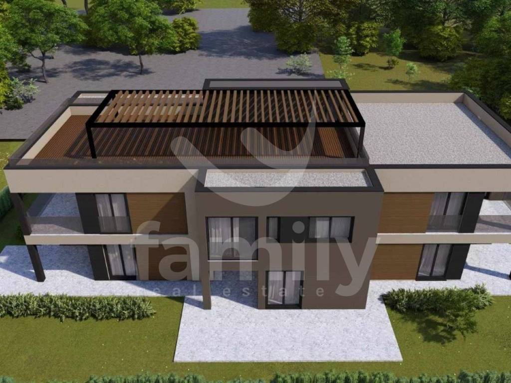 In one such settlement, this two-bedroom apartment on the ground floor of a residential building with five apartments that is under construction will be located. It will consist of a hallway, two bedrooms, a living room with access to a 9 m2 loggia, a kitchen with a dining room, a bathroom, and a living area of 68 m2. The apartment will also have a 120 m2 garden with irrigation, as well as a storage room on the ground floor located under the stairs. The apartment will have one parking space (with preparation for a car charger) and another storage room that will be located outside the building.