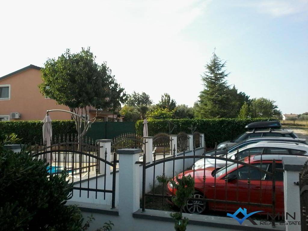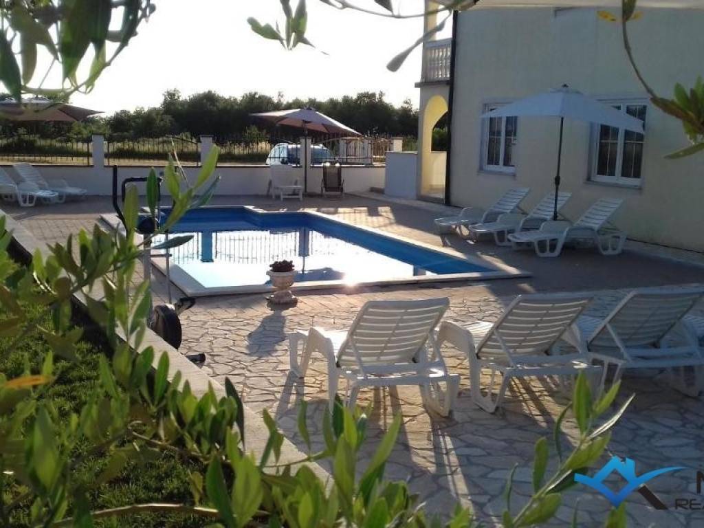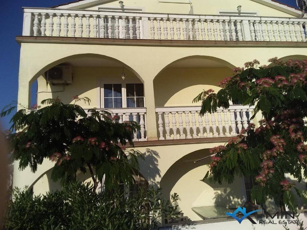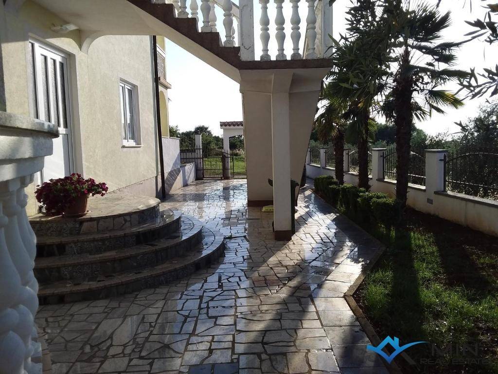 A house for sale is located 4 km from the center of Poreč and 3.5 km from the sea and a beautifully landscaped beach. The house is located in a quiet location and has 6 apartments. The apartment on the ground floor consists of an entrance hall, two bedrooms, bathroom, toilet, kitchen with dining room, living room and boiler room. On the 1st floor there are 2 apartments of 55 m2 consisting of an entrance hall, bathroom, 2 bedrooms, terrace, kitchen with dining room and living room. On the 2nd floor there are 3 apartments, 2 of which are studio apartments and 1 large apartment of 70 m2, which consists of a hallway, bathroom, bedroom, kitchen with dining room, living room and terrace with a view of the sea. The house has a large plot of 783 m2 on which there is a 36 m2 swimming pool and a tavern with a fireplace. The house can be used for residential or tourist purposes.