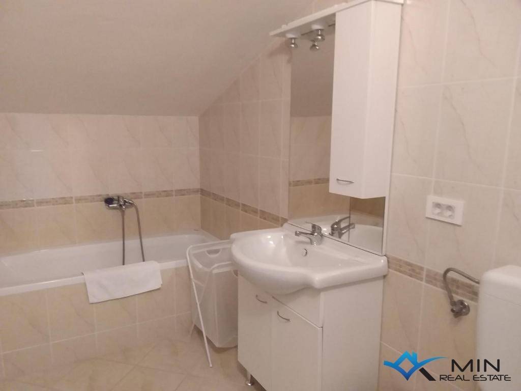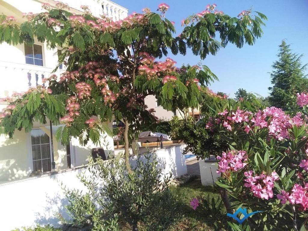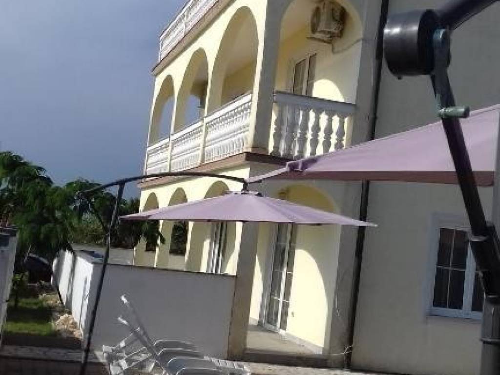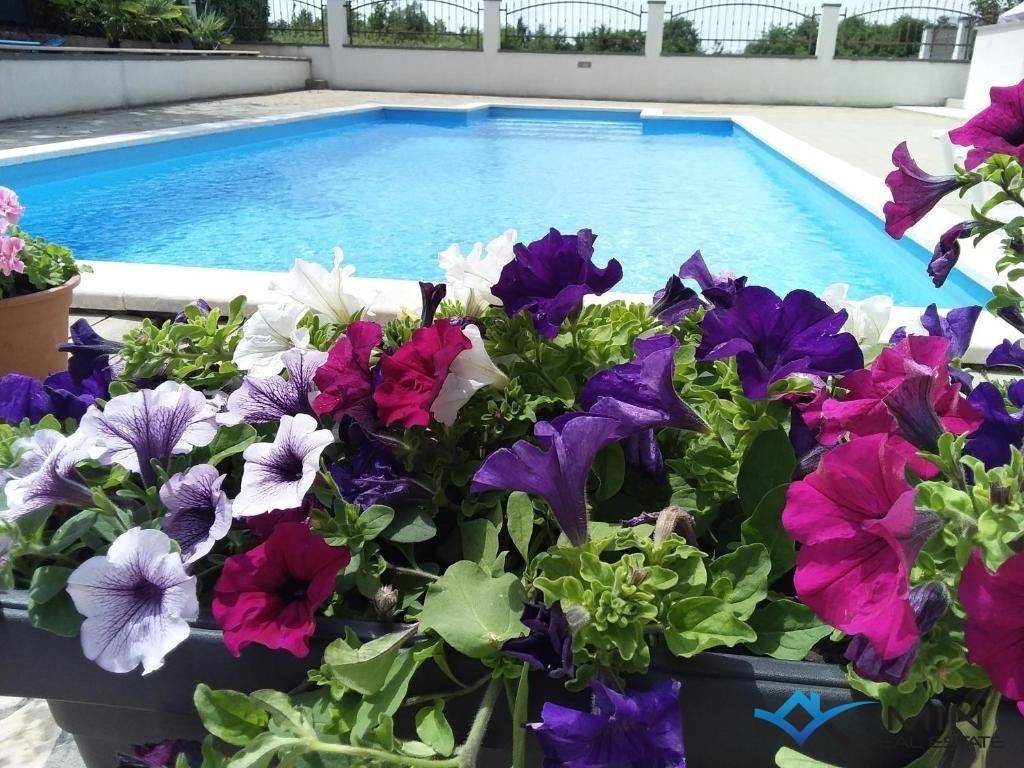 A house for sale is located 4 km from the center of Poreč and 3.5 km from the sea and a beautifully landscaped beach. The house is located in a quiet location and has 6 apartments. The apartment on the ground floor consists of an entrance hall, two bedrooms, bathroom, toilet, kitchen with dining room, living room and boiler room. On the 1st floor there are 2 apartments of 55 m2 consisting of an entrance hall, bathroom, 2 bedrooms, terrace, kitchen with dining room and living room. On the 2nd floor there are 3 apartments, 2 of which are studio apartments and 1 large apartment of 70 m2, which consists of a hallway, bathroom, bedroom, kitchen with dining room, living room and terrace with a view of the sea. The house has a large plot of 783 m2 on which there is a 36 m2 swimming pool and a tavern with a fireplace. The house can be used for residential or tourist purposes.