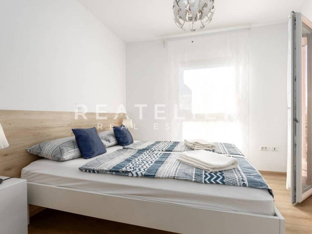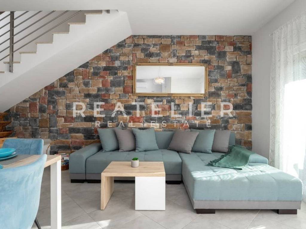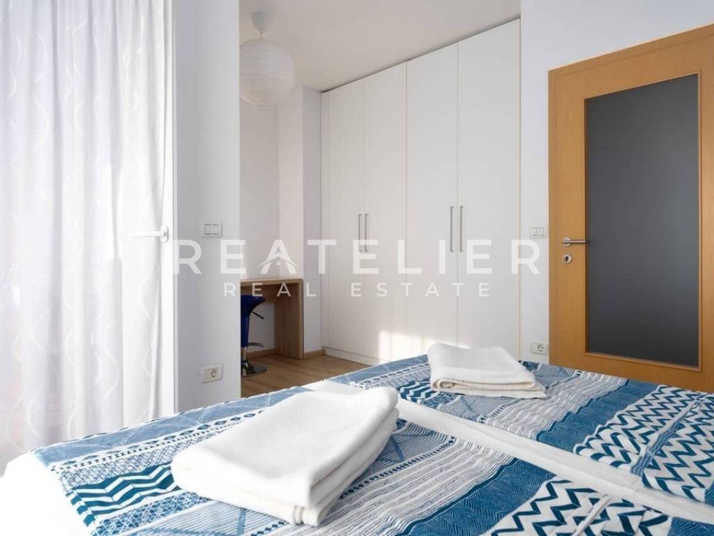 Holiday home with an area of 91 m2. On the first floor, there are two bedrooms with comfortable double beds and a large bathroom equipped with a shower cabin and a whirlpool bath. On the ground floor, there is a modern kitchen equipped with all necessary appliances and a spacious living room with quality furniture. An additional toilet is located on the ground floor of the property.