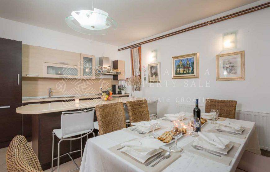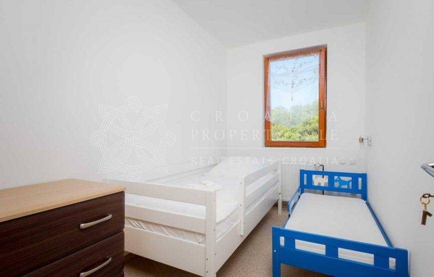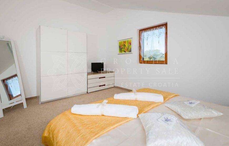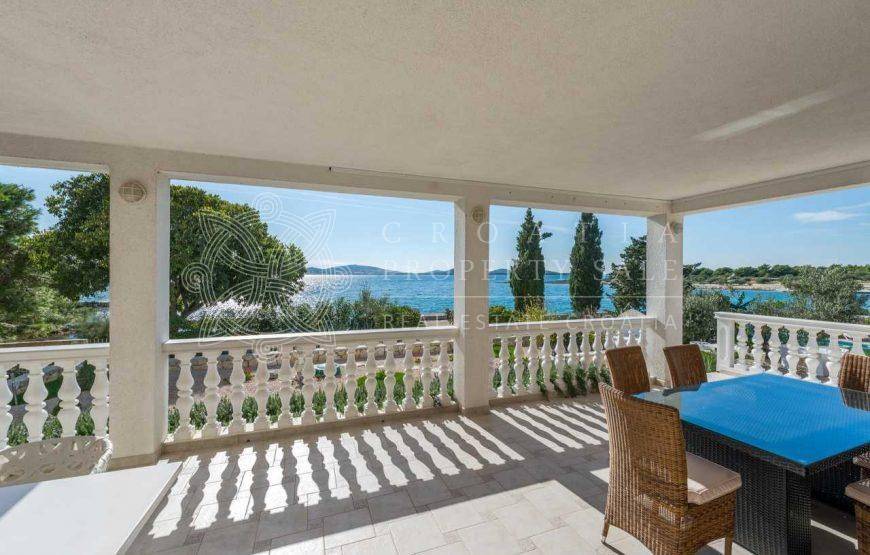 Croatia Sibenik Riviera beachfront villa for sale with pool and private beach offers 350 sq.m. of living space and is surrounded by untouched nature. The villa is positioned directly on a gravel beach, perfect for swimming, with easy access to deeper water and a small shallow bay ideal for children to play and swim.The property features a spacious garden, a sundeck, a swimming pool, and shaded private parking for 8 cars, with additional parking available for 20 more. Located on a quiet street, away from the main road and without any neighboring houses, this villa offers true privacy for a relaxing holiday.The house is divided into several parts. On the ground floor, youll find a large lobby with a TV room and a fireplace, creating a welcoming atmosphere for guests. This floor also provides accommodation for supporting staff, such as maids or chefs. The first floor includes a kitchen and dining room, along with two duplex apartments, each with its own external staircase. Each apartment is approximately 150 sq.m., split across two levels. The first level features a master bedroom with a king-size bed, a second bedroom with two single beds (ideal for children), a master bathroom with a shower and toilet, and an additional separate toilet. There is also a large living room with a fully functional kitchen, a dining table for eight, and a large balcony with garden furniture offering stunning sea views. Upstairs, accessible by a spiral staircase, each apartment has two very large bedrooms with king-size beds, a second bathroom with a shower, and a separate toilet.The villa is equipped with TVs, DVDs, portable air conditioning units, and an espresso machine in the lobby of each apartment. The garden features a large stone BBQ, and there is also a 5-meter fiberglass boat available for rent or for organizing trips with a licensed driver.Powered by solar energy, this villa offers a perfect blend of luxury and sustainability. The price for this exclusive Croatia Sibenik Riviera beachfront villa for sale with pool and private beach is available upon request.