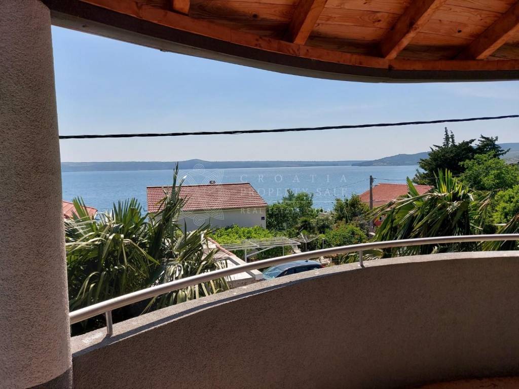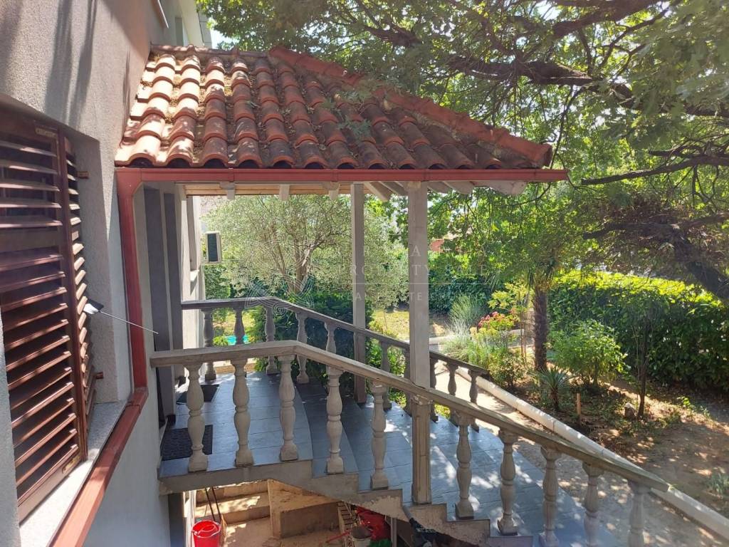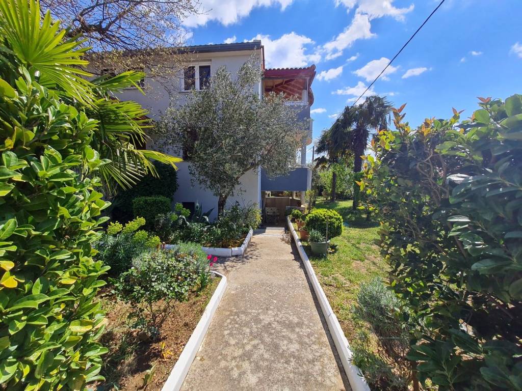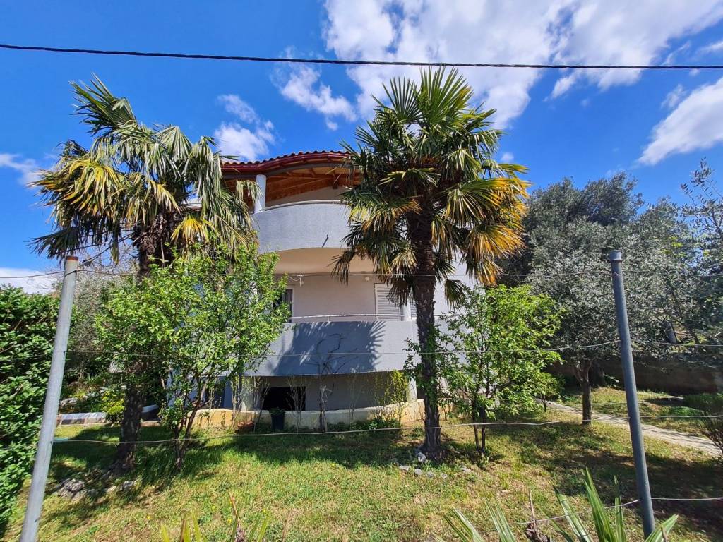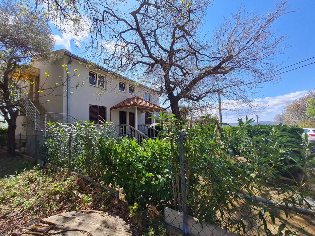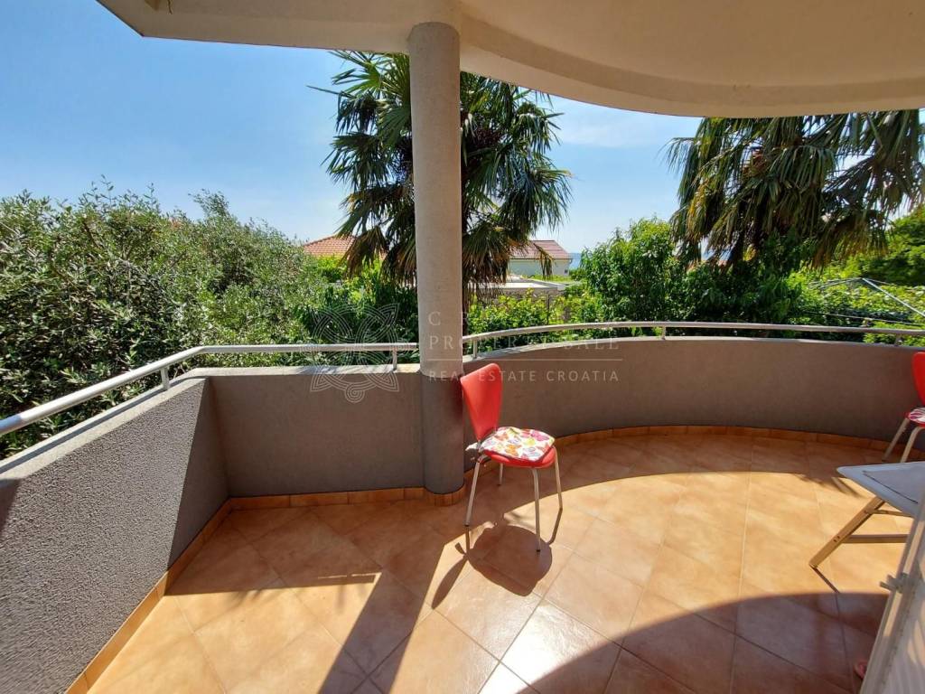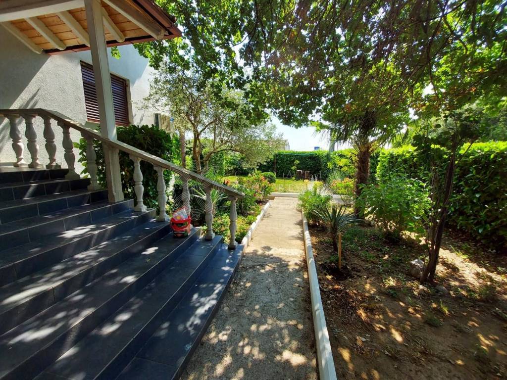Croatia Zadar Posedarje area sea view house for sale is located in 3rd row from the sea, about 150 meters from the beach. House has beautiful panoramic sea view and surface of 350 square meters of brutto space. House sits on the 500 square meters of land which is lush garden with palms and pine trees, outdoor fireplace, garage and parking. Garden is well maintained and is beautifully organized for outdoor living in summer time.