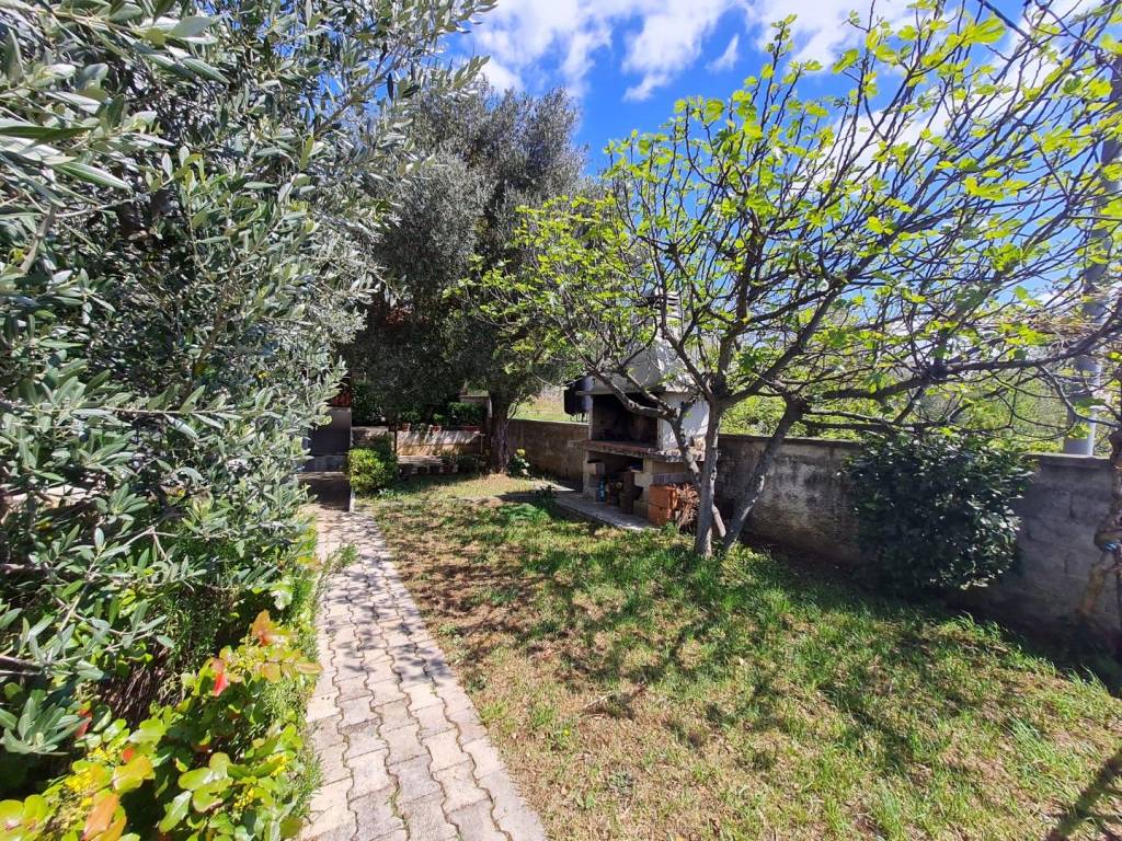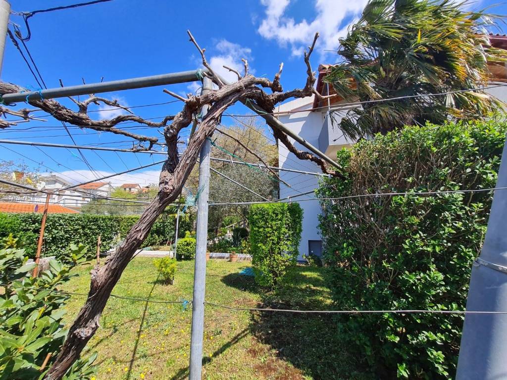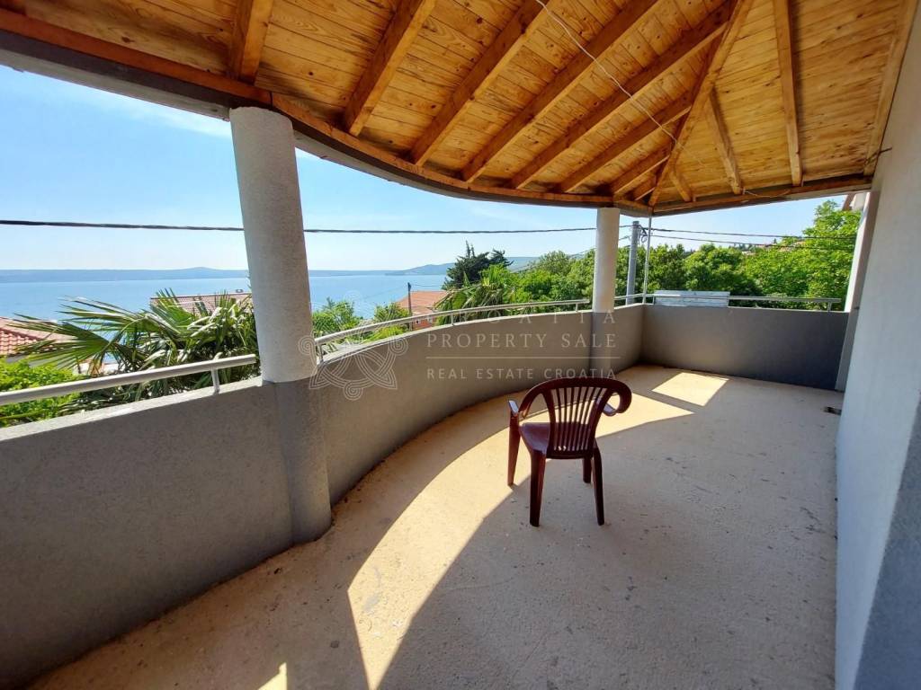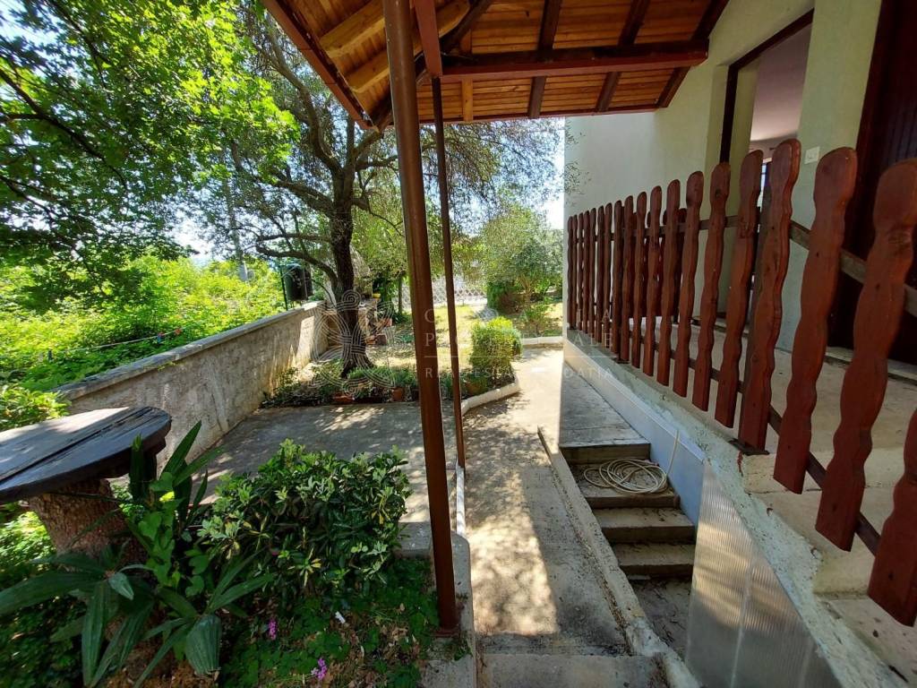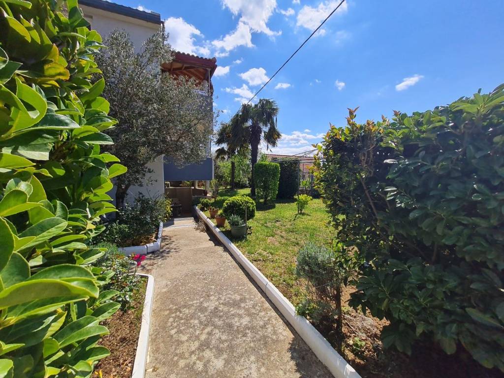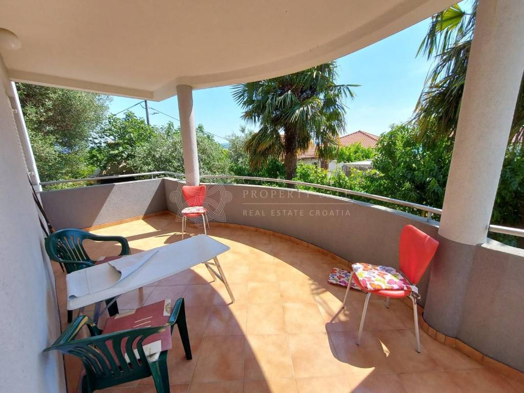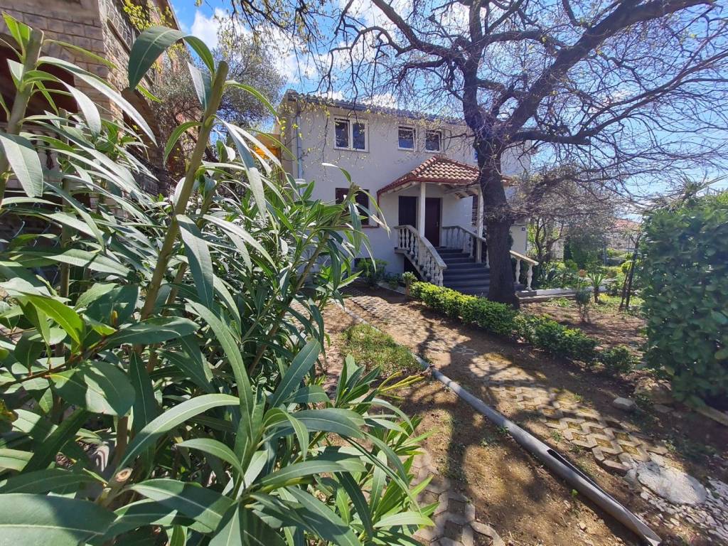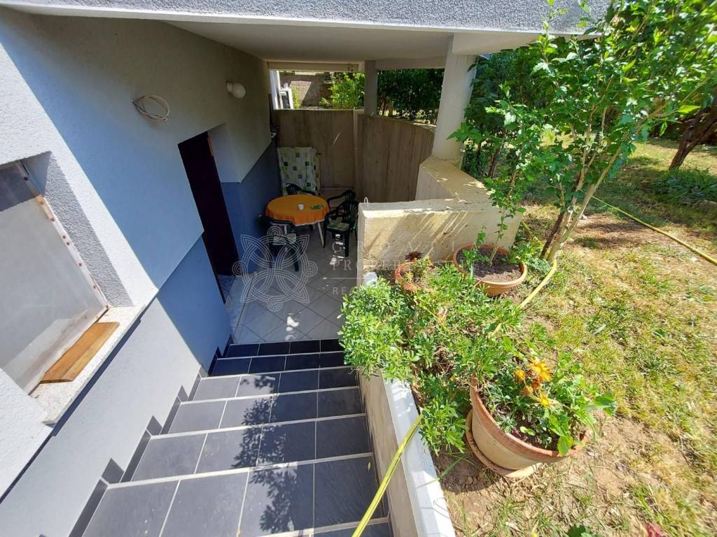 Croatia Zadar Posedarje area sea view house for sale is located in 3rd row from the sea, about 150 meters from the beach. House has beautiful panoramic sea view and surface of 350 square meters of brutto space. House sits on the 500 square meters of land which is lush garden with palms and pine trees, outdoor fireplace, garage and parking. Garden is well maintained and is beautifully organized for outdoor living in summer time.