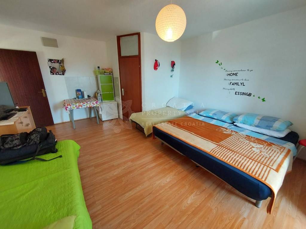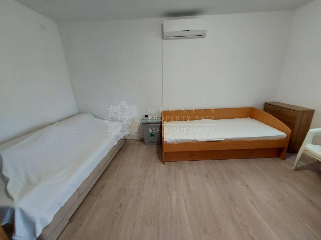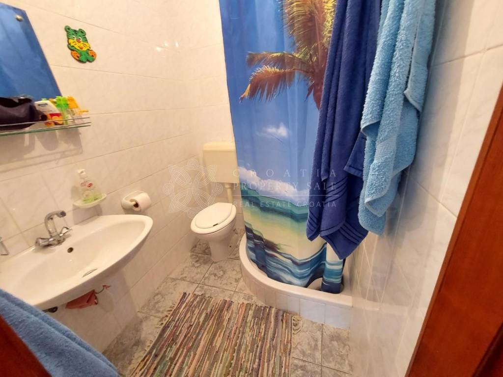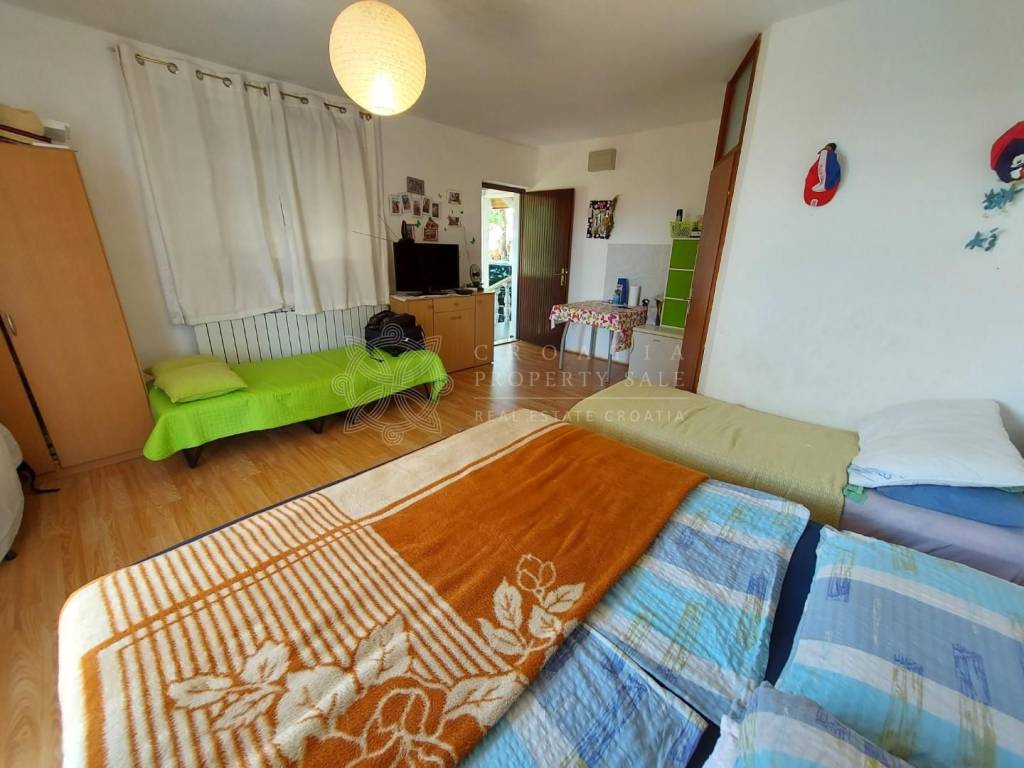 House has 6 studio apartments and 2 attic apartments, cellar of 40 square meters in the basement area. Attic apartments have 50 square meters each, but have not been completed inside. House is situated in quiet area with all amenities at walk distance. It is suitable for all year round living and also for tourist rental business. If you want to know how much income this house can bring from tourist rental, please contact us for precise calculation. We are also tourist agency and will be happy to help with advice related to rental potential of this home. Price for Croatia Zadar Posedarje area sea view house for sale is 350 000 EUR.