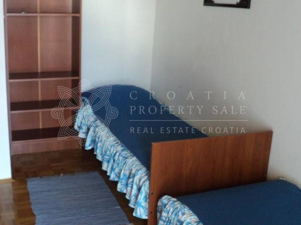 The auxiliary building in the yard has 18 m2 (kitchen and bathroom). The house has 5 parking spaces on the back side, a front garden with fruit trees and a spacious terrace with a fireplace. The house sits on the land plot of 430m2 .