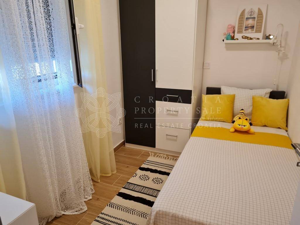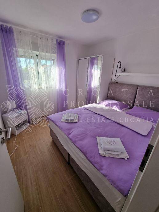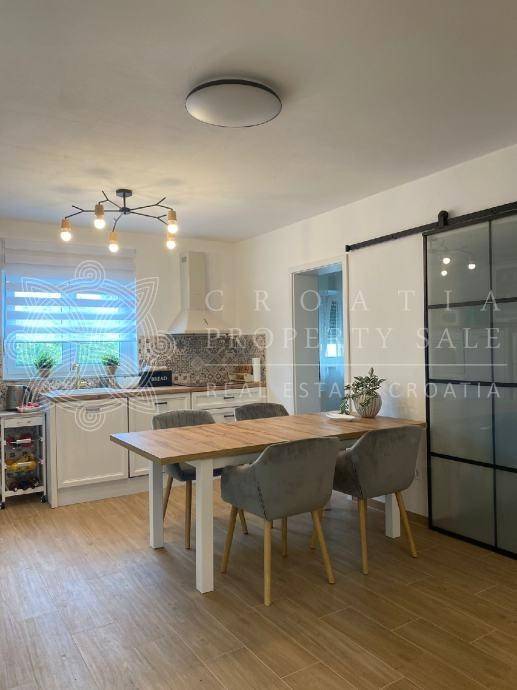 Croatia Nin Zadar beautiful house for sale near beach features quality construction and a large yard with a total land plot of 500 m2. It is hidden from the street, offering peace and privacy. There is enough space to install a swimming pool if desired. The house is completely renovated in 2024, which includes upgrades to the electricity and water installations, floors, walls, bathrooms, and furniture. House is connected to the electricity and city water supply, and has its own septic tank.