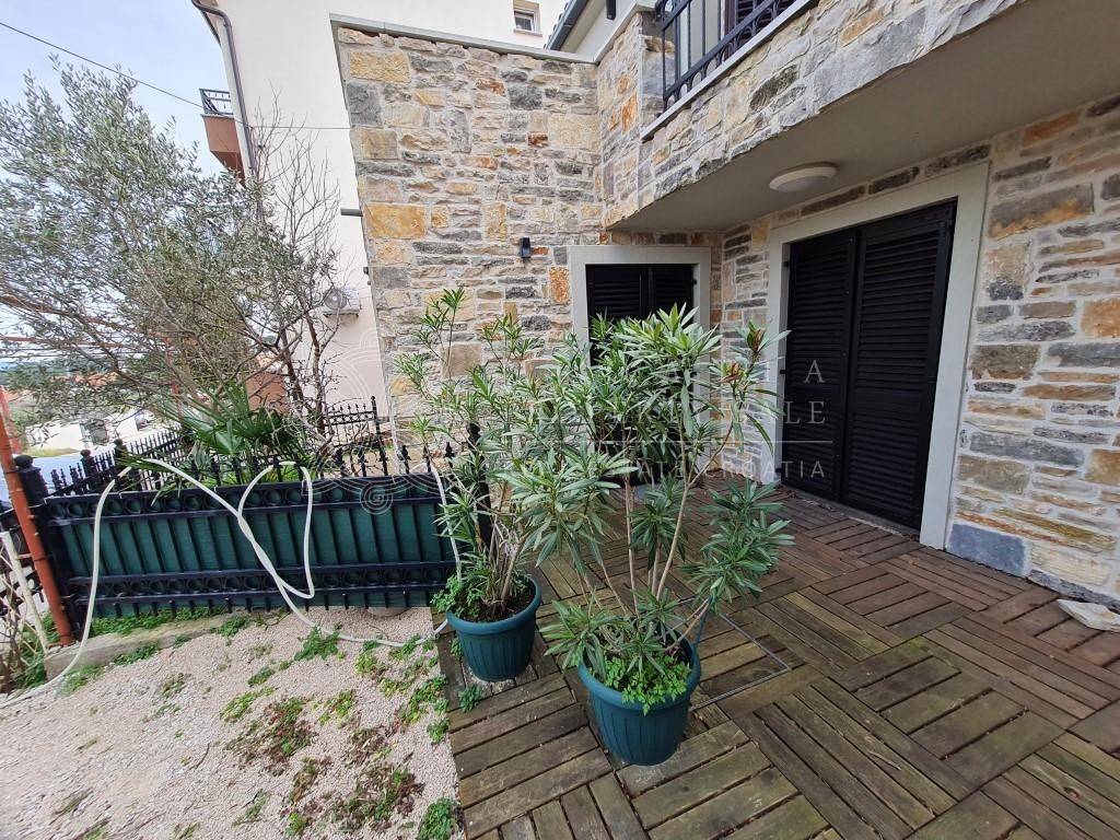 Front side apartment has 50 m2, underfloor heating, 2 bedrooms, front terrace, bathroom with washing machine, fully equipped kitchen and dining area. Back side apartment has 80m2 and is laid on two levels.