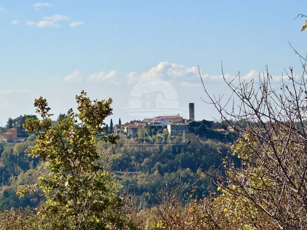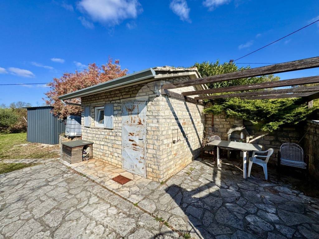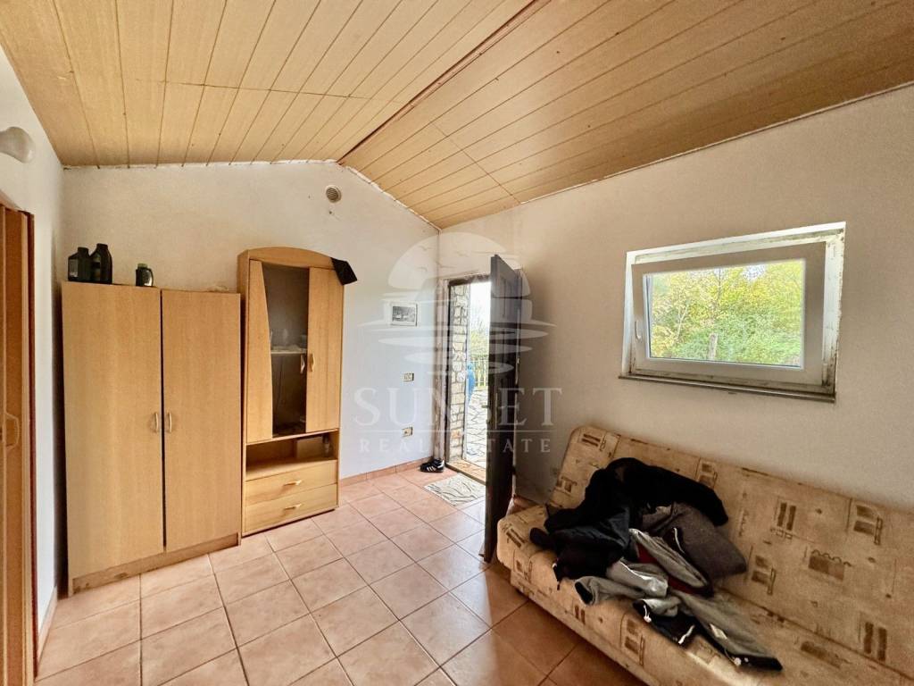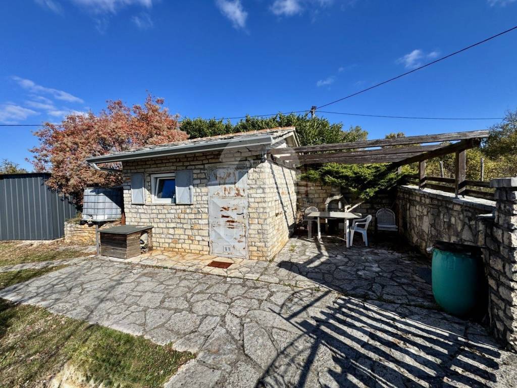 The plot is planted with 58 olive trees, about 20 years old, giving the property a lovely Mediterranean character. From the property, you can enjoy a fantastic panoramic view of the picturesque town of Oprtalj and the surrounding countryside.