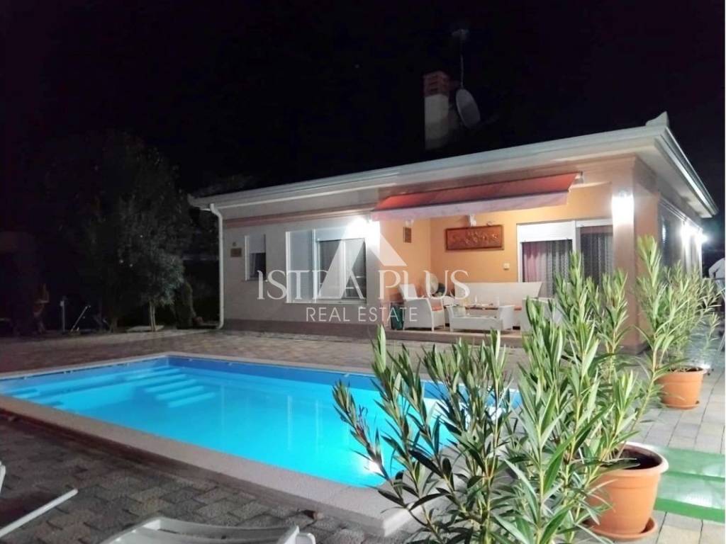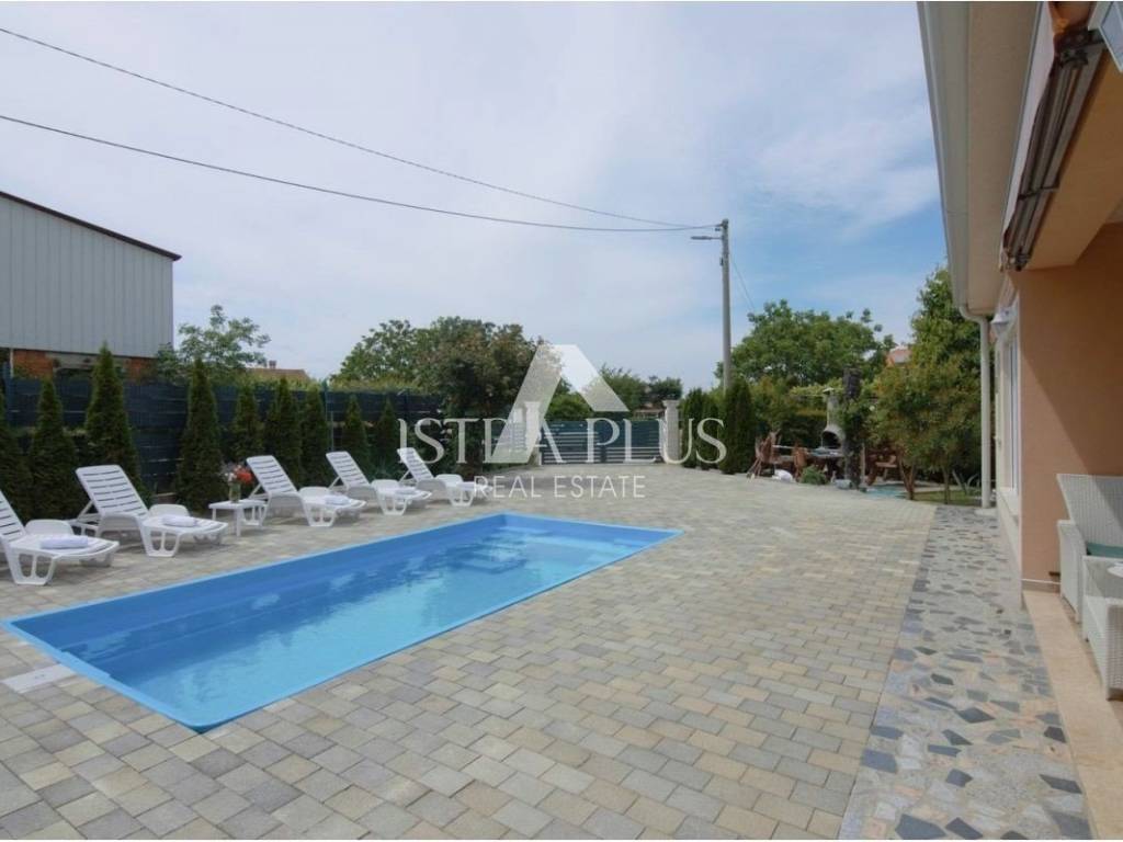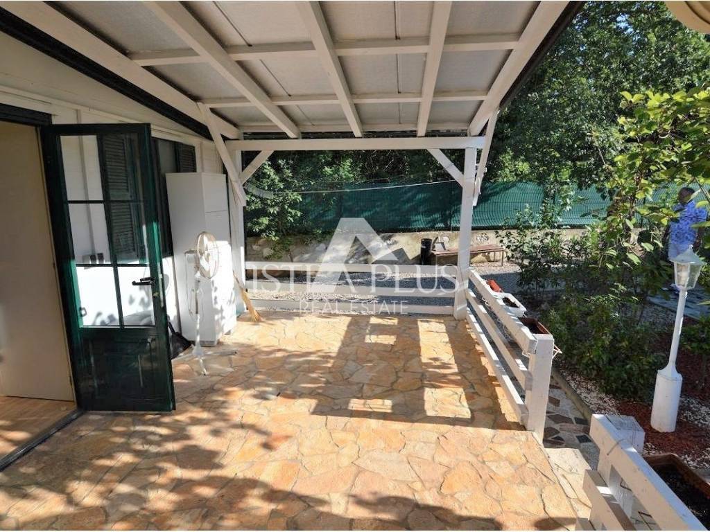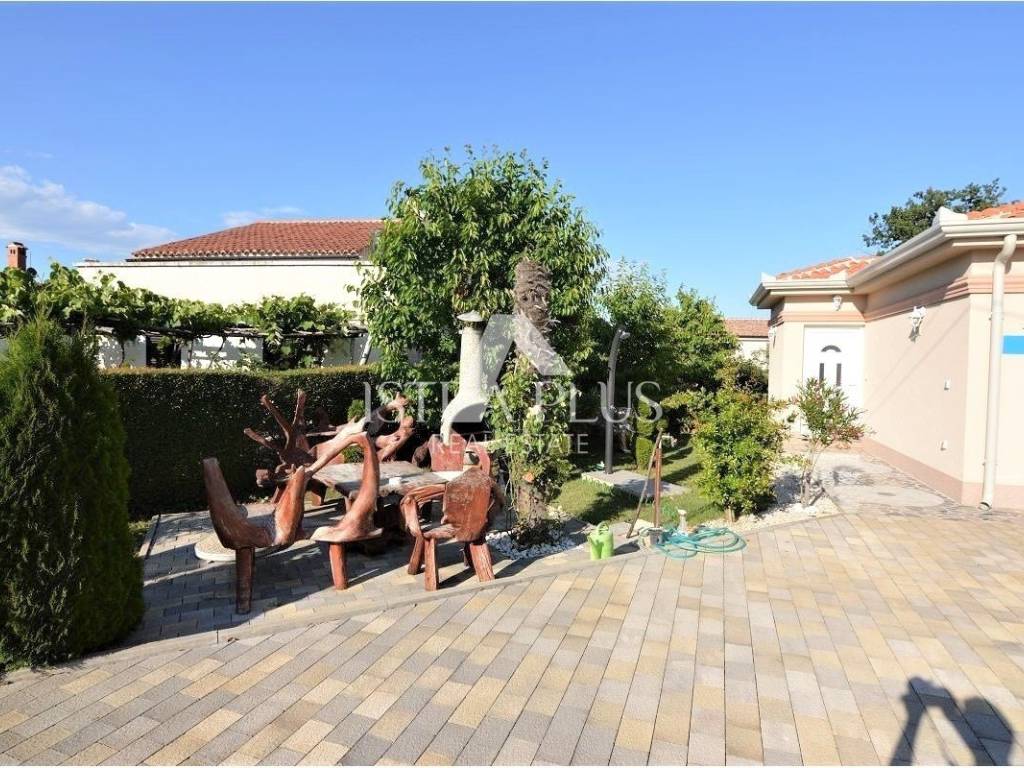 K41 Poreč area - one-story house for sale, luxuriously furnished. It consists of an entrance hall, JOOP brand kitchen with dining room and living room, terrace, bathroom and two bedrooms. In the yard there is also a caravan where you can stay. The land has 705 m2 where there is a swimming pool of 18 m2