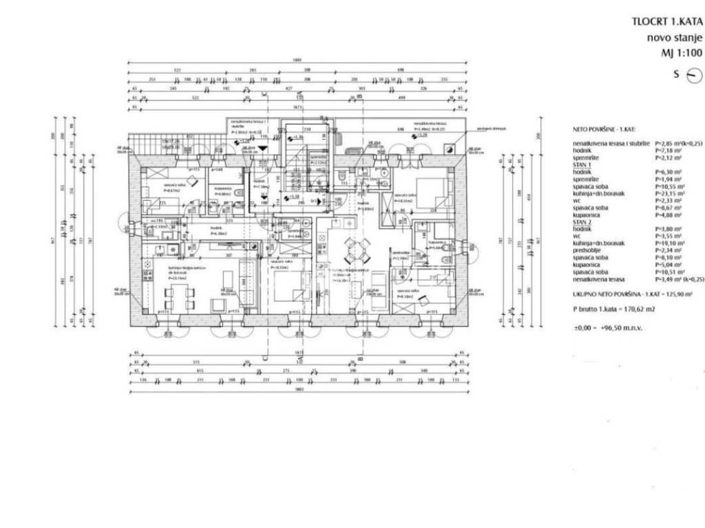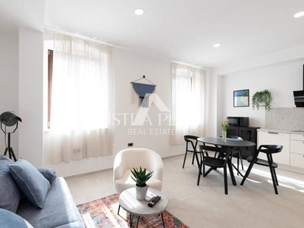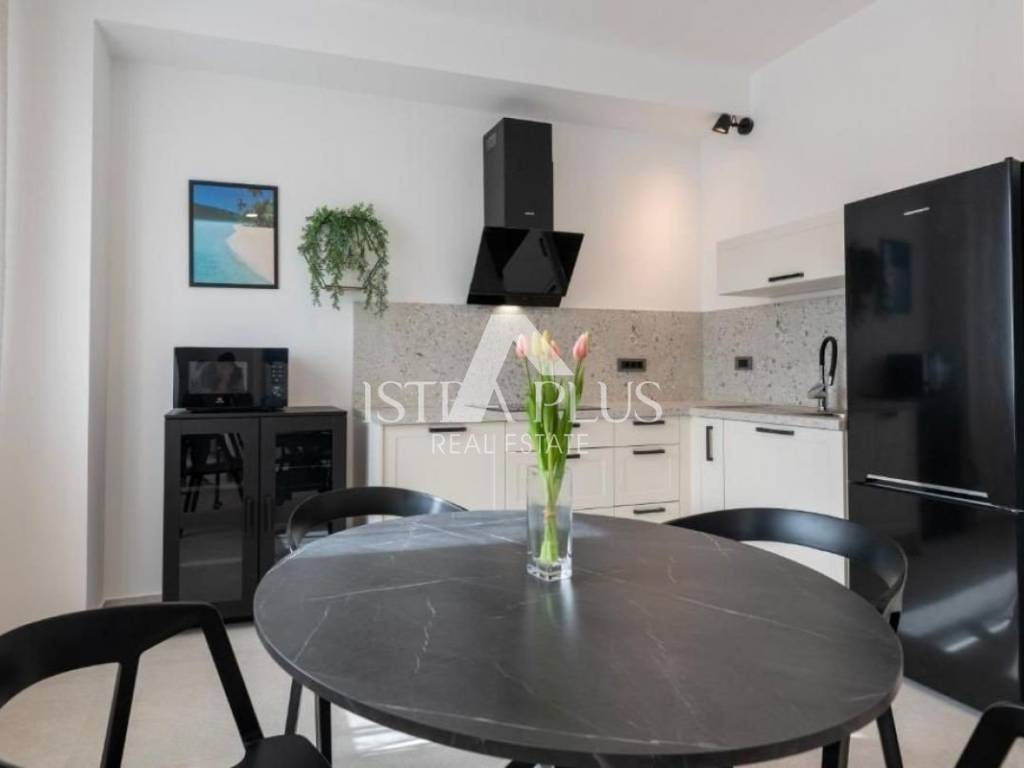 S54 A new apartment is for sale on the 1st floor and consists of an entrance hall, a kitchen with a dining room and a living room, two bedrooms and a bathroom and toilet with a laundry room. The apartment is fully furnished and is being sold as such. Heating and cooling with air conditioning and underfloor heating in the bathrooms. The apartment is 3 km from the first beaches. Nearby there is a school, a supermarket, a doctor, a pharmacy and other facilities necessary for life. The buyer does not pay the 3% real estate tax because the apartment is sold by a legal entity.