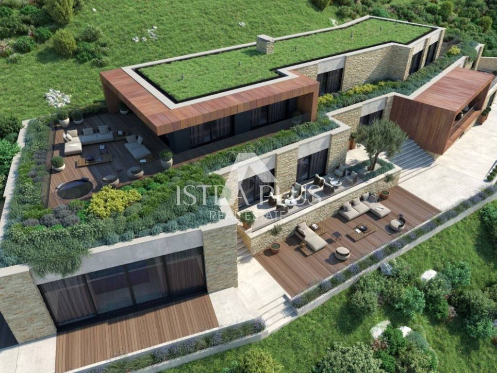 Građevinsko zemljište sa građevinskom dozvolom i projektom za Vilu ukupne kvadrature od 1099 m2 koja se proteže na 3 etaže te nudi predivan pogledom na more.
