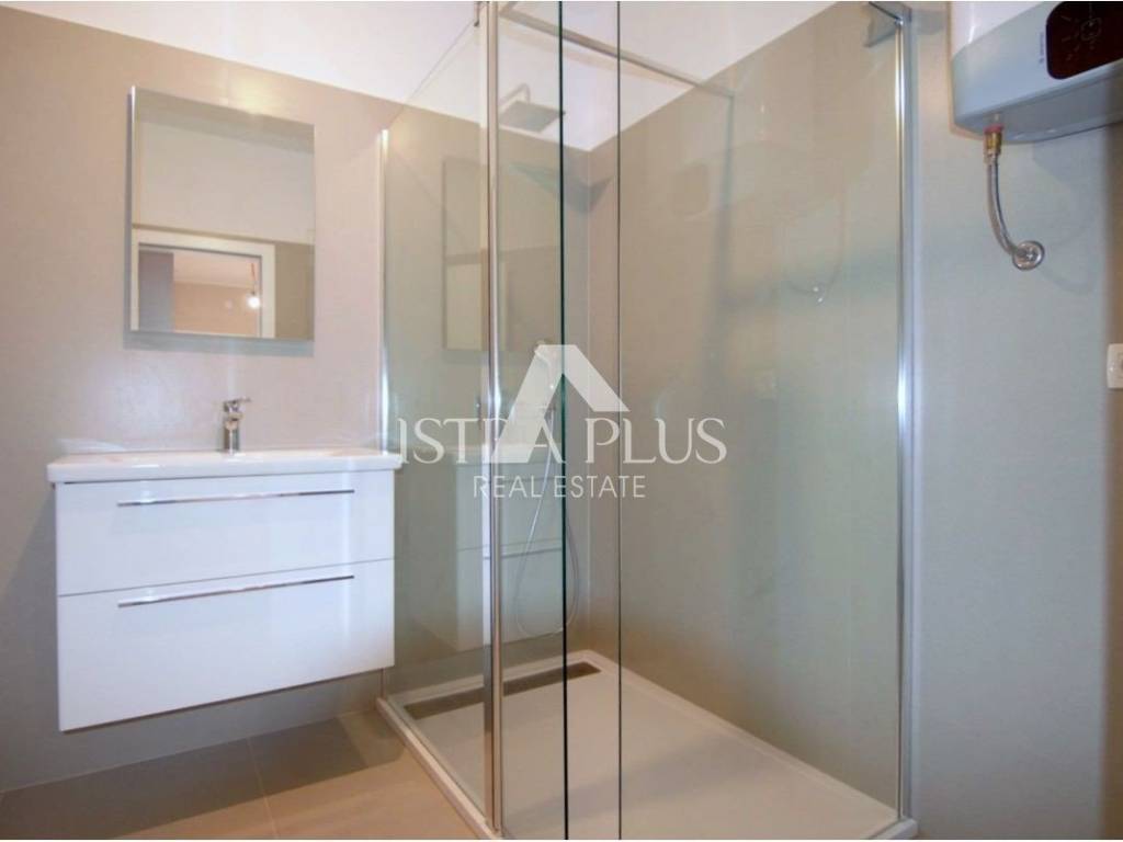 In Poreč, in a quiet and attractive location only 800 m from the beach, an apartment is for sale on the 1st floor of a building with only 5 apartments. The apartment consists of an entrance hall, three bedrooms each with their own bathrooms, a kitchen with a dining room and a living room with access to a spacious covered terrace with a view of the sea. Electric underfloor heating in all rooms, except for the bedrooms, where air conditioners are provided. The apartment also has a storage room on the ground floor of the building and two parking spaces.