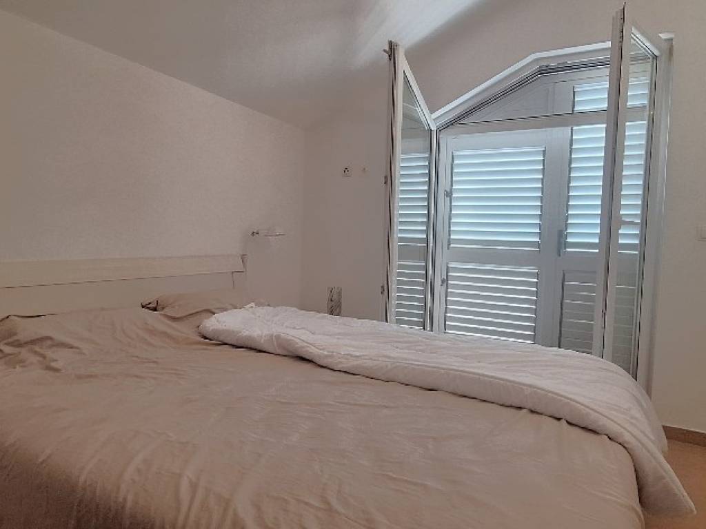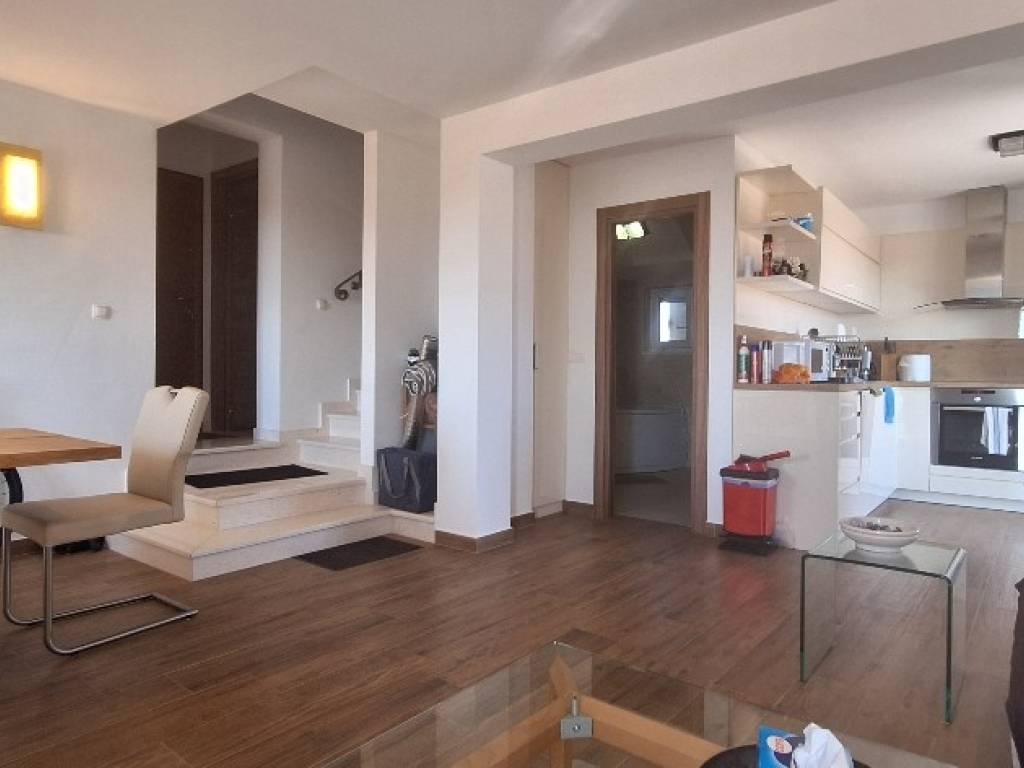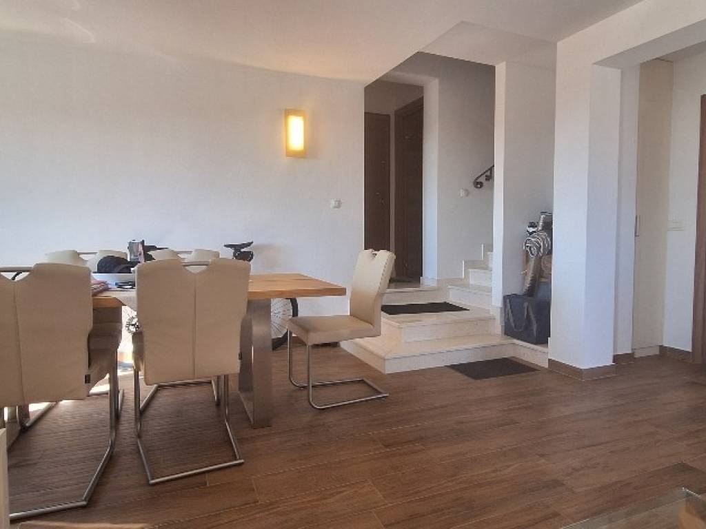 Layout: 1st floor: entrance hall, modern kitchen, open-plan dining and living room with access to two covered terraces, bathroom, staircase 2nd floor: hallway, three bedrooms (two with private terraces), second bathroom The apartment is fully furnished, air-conditioned, and move-in ready no further investment needed.
