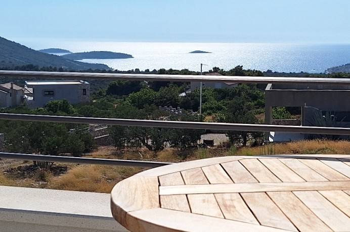 Situated in a quiet area just 1500 meters from the beach, the property boasts a stunning open sea view perfect for year-round living or as a luxury holiday home.