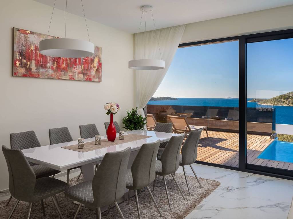 Nestled in a peaceful, gated villa complex near Rogoznica, just a few minutes walk from the beach, this spectacular property offers privacy, comfort, and panoramic sea views that stretch as far as the eye can see.