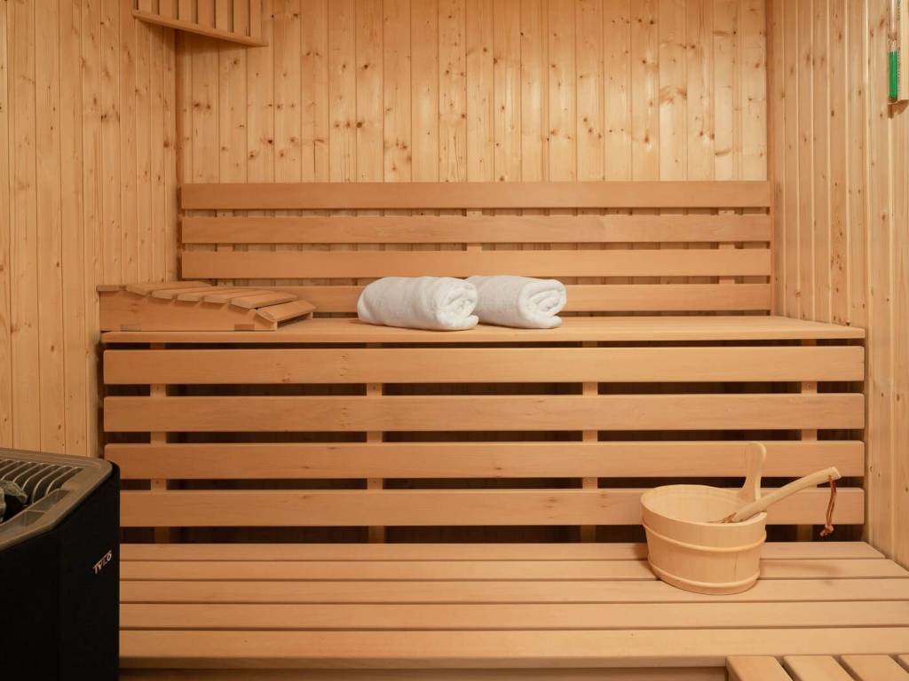Theres also a laundry room with a washer and dryer, a guest bathroom, and a standout feature a private wellness room complete with jacuzzi and sauna.