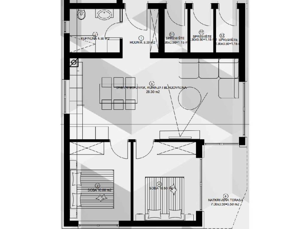 Apartment equipment: air conditioning and underfloor heating, 10 cm stiradur facade insulation, high-quality double-layer aluminum joinery, fully equipped bathroom.