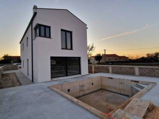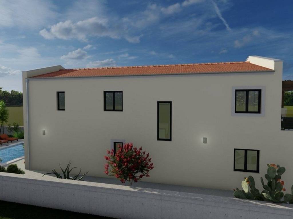 For sale a house in with a net area of 160 sqm and a swimming pool of 24 sqm. The house has 3 bedrooms, 3 bathrooms, each with a shower or a bathtub. The advertised price refers for completely finished house. The price includes a fully finished house with equipped bathrooms (excluding furniture), landscaped garden, and a fully completed swimming pool.