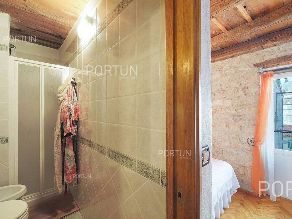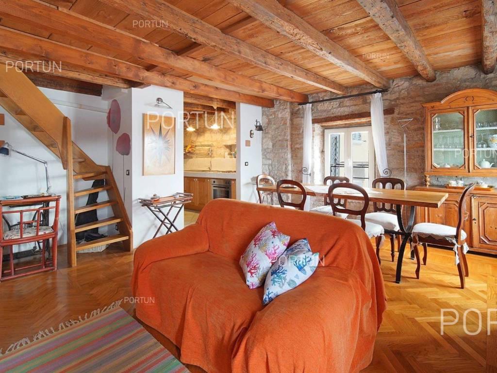 The rustically furnished apartment in the very center of Rovinj has as many as four bedrooms, and the spacious living room with a view of the sea through as many as three windows is especially impressive. The apartment extends through the 4th floor and attic of a medieval stone house located in a prestigious location between the waterfront and the main shopping street Carera. The current owners thoroughly renovated the apartment in 2002 in a rustic style, leaving visible the beautiful stone walls and wooden beams that bear witness to the past centuries. A large traditional fireplace as well as wooden floors made of massive parquet contribute to the atmosphere of a warm family home. The apartment can accommodate a family of eight - there are two bedrooms with separate beds and two bedrooms with double beds. This apartment offers a fantastic living experience in an extraordinary location next to the sea in one of the most beautiful cities in the Mediterranean, and it is decorated in a traditional way that will force you to slow down the pace of life and enjoy a glass of wine and a view of the sea in the company of your chosen company. LocationWith its cobblestone streets, old stone houses, medieval churches, endless vistas over the countryside and the sea, cute little shops, art galleries, wine bars and distinctive nature, Istria is not just a place to be, but a place to live! Situated on the north Adriatic Sea, on the western coast of the Istrian peninsula, there lies Rovinj, a charming town known for it's rich history, enchanting old town, extraordinary natural landmarks and sights. A striking location in the center of Rovinj, is ideal for discovering the numerous attractions and facilities near the apartment:Sea | Baluota beach 550 m Services | Food store 200 m - Cafe or bar 50 m - Inn or restaurant 30 m - Elementary School 200 m - Kindergarten 450 m - Health center 500 m - Pharmacy 450 m Sports and fun | Mini soccer field 700 m - Basketball court 250 m - Public swimming pool 2,8 km Nearby towns | Poreč 35 km - Pazin 35 km Traffic | Highway entry Kanfanar 15 km - Pula Airport 41 km Attractions | Abandoned medieval town Dvigrad 20 km - Special ornithological reserve Palud 10 km LayoutThe traditionally furnished apartment with an excellent layout, with 91 square meters, is spread over two floors, namely the 4th floor and the attic. Fourth floor | Internal stairs lead to the entrance to the apartment on the 4th floor. This 61,80 m2 floor includes a living room with dining room, a kitchen, one bedroom, a bedroom with en suite bathroom, one bathroom, a corridor and a pantry. Attic | Internal wooden stairs lead to the upper level, that is to the attic. This 28,70 m2 level features two bedrooms. The two key rooms in this apartment are The living room with dining room | Fourth floor - 27,10 m2 - Southwest facing - View of the sea and old roofs - Excellent orientation ensures plenty of natural light - Two-seater - Armchairs (2x) - Coffee table - Massive wooden table - 6 ChairsThe master bedroom | Fourth floor - 16,60 m2 - Northeast facing - View of the city street - Visible wooden beams - Wardrobe closet - Bathroom with shower - Double bedParking spaces Parking lot Valdibora 300 mAbout the houseThe apartment is located in a stone house that extends through ground floor, four above-ground floors and attic. The entrance to the house is on the ground floor level, from the northeast side, and vertical communication takes place via an internal staircase. The basic architectural characteristics of this stone house are: External walls | Stone wall 60 cm Wooden floor structure Roof | Pitched roof covered with clay tiles Built approx. in 1700 Thoroughly renovated 2002Furniture and equipmentFurniture | Rustic furnitureEquipment | Parlaphone - Lighting - Sanitary ware - Bathroom furnitureJoinery | Aluminum joinery with double glazing - Wooden shutters - Roof windows - Security solid wood door - Interior doors made of solid woodHeating and cooling | Air conditioning - Electric boiler - ChimneyFlooringCeramic tiles | Fourth floor (Kitchen - Bathrooms)Oak parquet | Fourth floor (Living room with dining room - Bedrooms) - Attic (Bedrooms)Services Connection to the power grid with its own meter Private connection to the water supply network Connection to the sewage system Mobile internet Stone-paved street | Distance to the paved road 30 mDocumentationExtracted documents | Floor study - Usage permissionArea calculationThe area of the apartment (90,50 m2) includes the areas of these spaces:Living area with normal height (Fourth floor) = 61,80 m2*Living area that includes parts lower than 2.00 m (Attic) = 28,70 m2**Area is given without accrued construction coefficientsData source = Plan of special parts of the building (floor study)