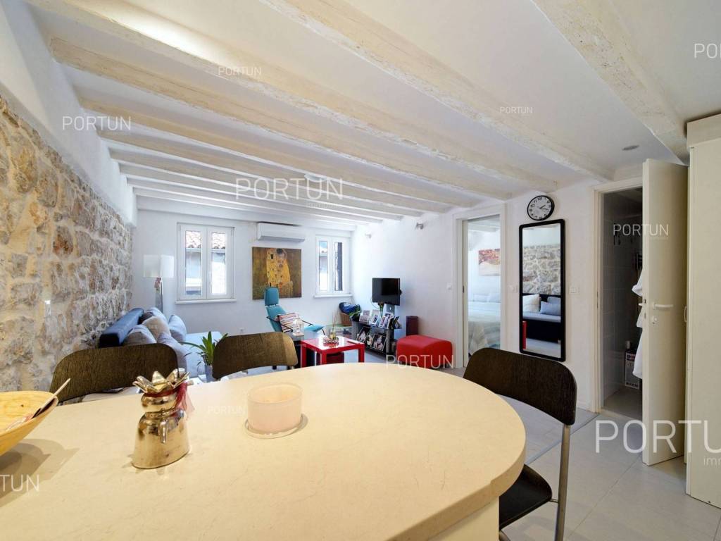 This apartment located in the very center of Rovinj, not far from the main square, represents an ideal opportunity for those who want to live in the heart of the historic core of the city. It is located on the third floor of the building, which allows it plenty of natural light, creating a bright and pleasant atmosphere. The apartment has one bedroom and one bathroom, making it perfect for couples or singles. It was completely renovated in 2016, which means that all systems and installations are modern and functional. An additional advantage is that all furniture is included in the price, which allows the future owner to move in immediately without additional costs. It is air-conditioned, which ensures a pleasant temperature throughout the year, and is also equipped with an electric boiler for hot water. The apartment is located in an attractive location in the historical center of Rovinj, which provides a unique opportunity to enjoy the charm of the old town. Baluota beach is only 400 meters away, which allows quick and easy access to the sea. All these characteristics make this apartment an extremely attractive investment for anyone looking for a combination of comfort, modernity and historical charm in one of the most beautiful cities on the Adriatic coast. LocationLocated almost in the heart of Europe, Istria has an ideal geographical position, halfway between the equator and the North Pole, like a bridge connecting the Central European continental area with the Mediterranean. On the west coast of Istria is picturesque Rovinj - known for its romantic old town center, the protected Zlatni rt forest park of high aesthetic and botanical value, a rich gastronomic offer and tempting beaches. A small alley in the center of Rovinj, where the apartment is situated, is ideal for discovering numerous facilities and attractions nearby:Sea | Baluota beach 400 m Services | Food store 100 m - Cafe or bar 30 m - Elementary School 400 m - Health center 650 m - Pharmacy 650 m - Marina 120 m Sports and fun | Basketball court 400 m - Public swimming pool 2,9 km - Forrestal park Punta Corrente 2,2 km Traffic | Highway entry Kanfanar 15 km - Pula Airport 40 km Attractions | Special ornithological reserve Palud 11 km LayoutInternal straight stairs lead to the entrance to the apartment on the 3rd floor. The bright apartment, with 40 square meters includes a living room with a kitchen and a dining room, one bedroom and a bathroom with a shower. Parking spaces Parking lot Valdibora 270 mAbout the houseThe apartment is located in a stone house that extends through ground floor, four above-ground floors and loft. The entrance to the house is on the ground floor level, from the southwest side, and vertical communication takes place via an internal staircase. The basic architectural characteristics of this well-maintained stone house are: 7 Flats - 1 Business space External walls | Stone wall Wooden floor structure Roof | Pitched roof covered with clay tiles Built approx. in 1800 Thoroughly renovated 2016FurnitureFurniture | All furniture is included in the priceJoinery | PVC joinery with double glazing - Wooden shutters - Wooden entry door - Classic interior doorsHeating and cooling | Air conditioning - Electric boilerFlooring | Ceramic tiles - Laminate flooringServices Connection to the power grid with its own meter Private connection to the water supply network Connection to the sewage system Stone-paved street | Distance to the paved road 68 mDocumentationExtracted documents | Floor study - Usage permissionArea calculationArea of the apartment includes (40,00 m2): Living area = 40,00 m2**Areas are calculated with coefficient c= 1,00Data source = Unofficial measurment of the space