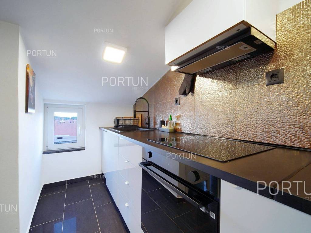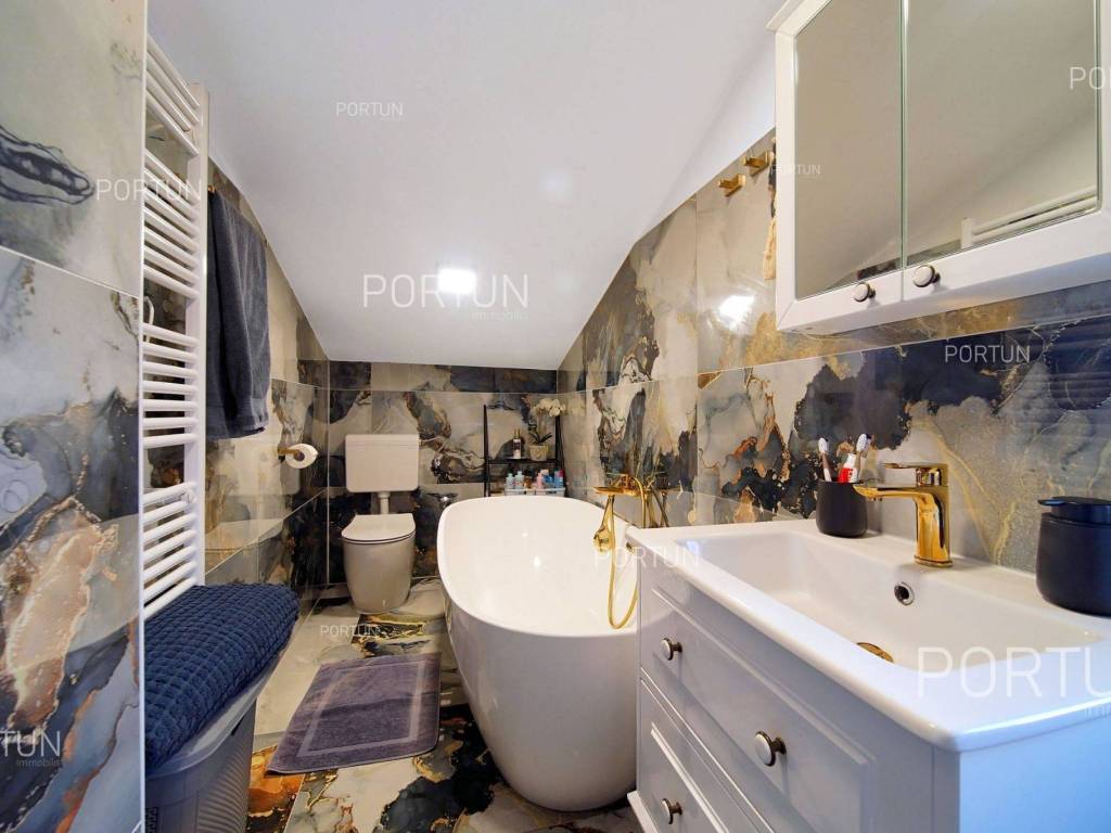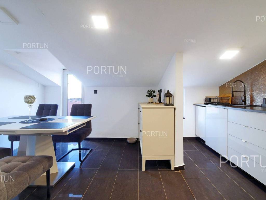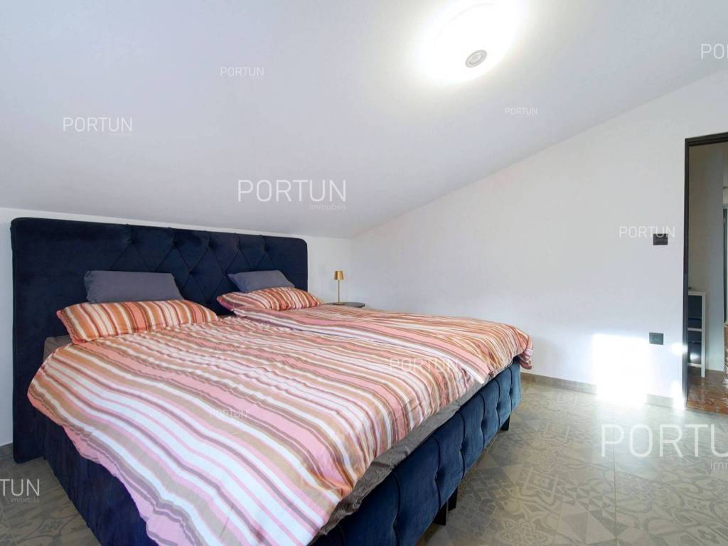 A spacious apartment for sale in the attic of a small building located in a peaceful area of Rovinj. The building was constructed in the 1980s, and the apartment was partially renovated in 2023. It consists of a kitchen with a dining area, three bedrooms, a bathroom, a hallway, stairs, and a terrace with a stunning sea view. The apartment is situated in a quiet location, surrounded by a forest and park, providing a pleasant and relaxing environment. Included with the apartment is part of the courtyard featuring a barbecue and a terrace, ideal for gatherings and outdoor enjoyment. The beach is only 1.5 km away, making this property an excellent choice for families, as well as a great investment for rental during the tourist season. Dont miss the opportunity to purchase this modern and comfortable apartment in one of the most beautiful towns on the Adriatic!. LocationOne of the most developed and beautiful regions of Croatia is green-blue Istria, known as the "new Tuscany", which represents a combination of unique natural sights and rich cultural heritage. Quiet location not far from Rovinj, is the perfect starting point for discovering attractions and facilities near the apartment:Sea | Beach 1,5 km Services | Food store 4 km - Cafe or bar 4 km - Inn or restaurant 350 m - Elementary School 5 km - Kindergarten 5 km - Health center 5 km - Pharmacy 5 km Sports and fun | Mini soccer field 50 m - Basketball court 50 m Nearby towns | Bale 8 km - Kanfanar 19 km Traffic | Highway entry Kanfanar 17 km - Pula Airport 34 km Attractions | Special ornithological reserve Palud 4,5 km LayoutInternal straight stairs lead to the entrance to the apartment at the attic level. The spacious apartment, with 97 square meters features a kitchen with a dining room, three bedrooms, one terrace, one bathroom, one hallway and a staircase. Parking spaces and particles Particles registered in the land register | Yard 57,04 m2 Parking on the public surfaceAbout the houseThe apartment is located in a two-story house that stretches through lower ground floor, ground floor, one above-ground floor and attic. The entrance to the house is on the ground floor level, from the southwest side, and vertical communication takes place via an internal staircase. The basic architectural characteristics of this well-maintained two-story building are: 5 Flats External walls | Block brick wall Floor structure is made of hollow clay bricks Roof | Pitched roof covered with clay tiles E.P.C. DThe construction time Built in the 1980's. Renovated 2023 (Apartment)FurnitureFurniture | All furniture is included in the priceJoinery | Aluminum joinery with double glazing - PVC joinery with double glazing - Aluminum entry door - Classic interior doorsHeating and cooling | Air conditioning - RadiatorsFlooring | Ceramic tilesServices Connection to the power grid with its own meter Connection to the water supply network with a shared meter Connection to the sewage system Paved public access roadDocumentationExtracted documents | Floor study - Decision on the constructed condition of the building - E.P.C.Area calculationThe area of the apartment (96,53 m2) includes the areas of these spaces:Living area = 92,92 m2 x 1,00 = 92,92 m2*Terrace = 14,43 m2 x 0,25 = 3,61 m2***Areas are calculated with coefficient c= 1,00**Areas are calculated with coefficient c= 0,25Data source = Plan of special parts of the building (floor study)Area of the yard amounts to 57,4 square meters. Data source = Plan of special parts of the building (floor study)