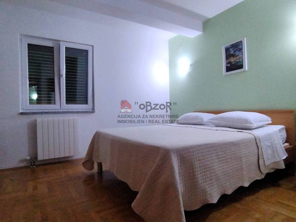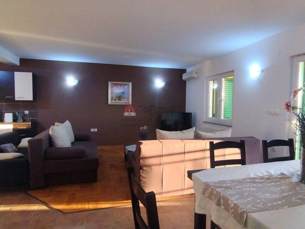 Ova nekretnina pažljivo je osmišljena za udoban život, s dvije prostrane sobe koje omogućuju funkcionalnost i privatnost. Apartman je jugozapadne orijentacije, što osigurava obilje prirodnog svjetla tijekom dana te pruža izuzetan pogled na more. Mirna lokacija, uređena okućnica i vrlo sunčana pozicija čine ovaj apartman izuzetno privlačnim za sve koji žele uživati u kvaliteti života uz obalu.