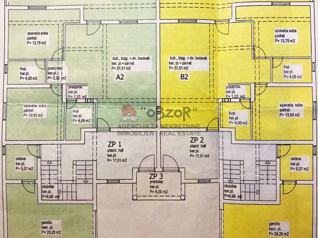 Tlocrtne površine su u prilogu i u priloženom nacrtu označeno žutom bojom.
