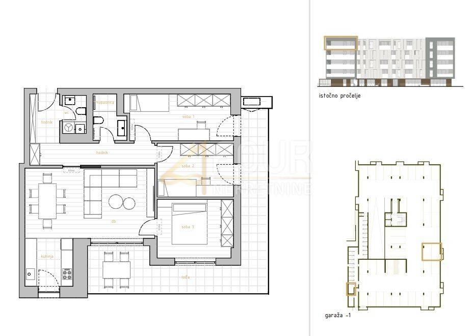 It is a spacious and functional apartment consisting of a hallway, three comfortable bedrooms, a kitchen, a spacious living room and dining room, a bathroom, and an additional toilet.