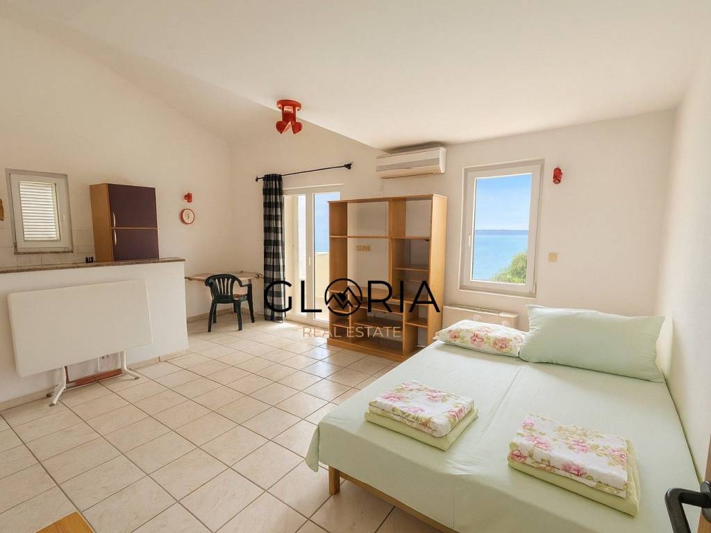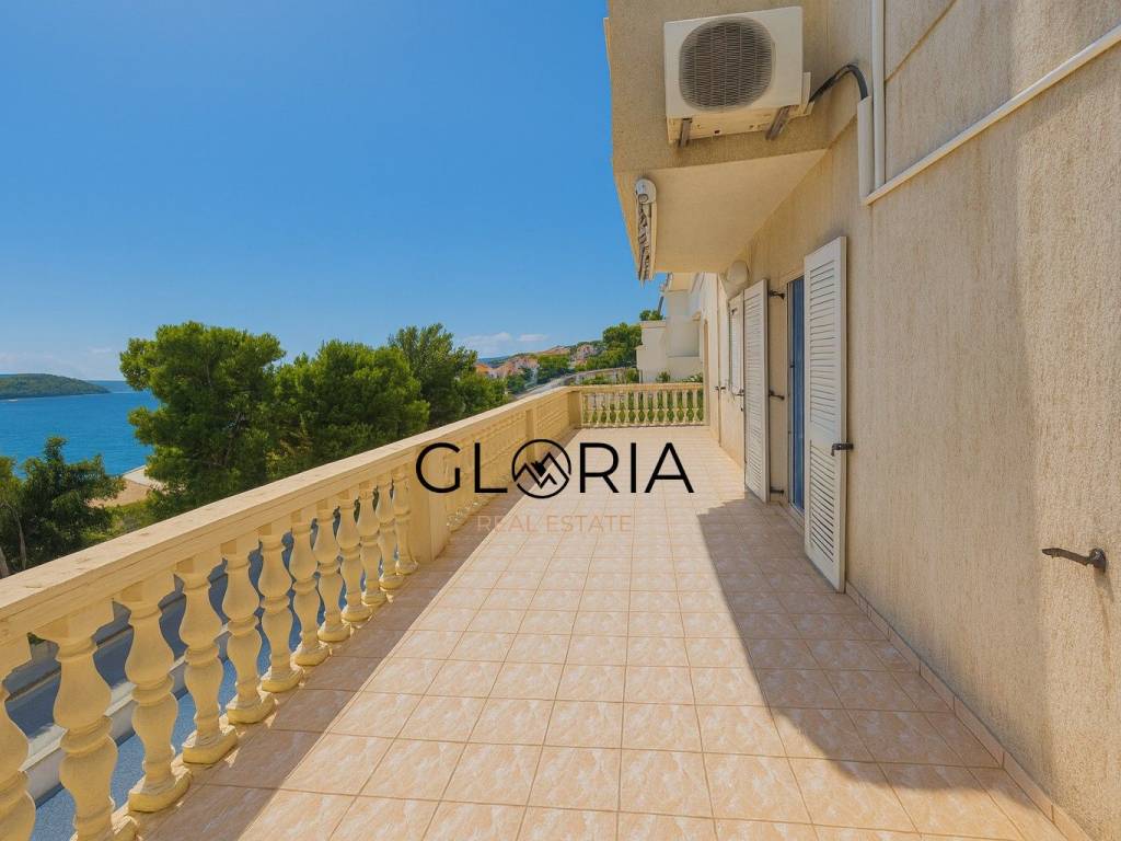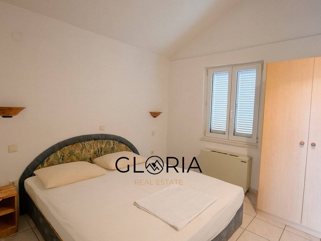 PRODAJE SE VIŠESTAMBENA KUĆA S OTVORENIM POGLEDOM NA MORE – 6 STANOVA + STUDIO, VELIKA OKUĆNICA, GARAŽA I VIŠE OSTAVA! Na prodaju je prostrana višestambena kuća smještena na kaskadnom terenu, što omogućuje otvoren pogled na more sa svih etaža te obilje prirodnog svjetla u svim stambenim jedinicama. Objekt je izgrađen u armirano-betonskoj konstrukciji (za posljednje dvije etaže nije potvrđeno jesu li AB), a odlikuje ga velika okućnica, izuzetna funkcionalnost i mogućnost dodatnih poboljšanja. SUTEREN • Garažni prostor s 4 garažna parkirna mjesta – ukupno 89,04 m2 • Dodatna ostava – 18,49 m2 PRIZEMLJE • Velika ostava površine 90,76 m2 • Dva dvosobna apartmana ukupne stambene površine 104,45 m2 • Prostrana popločana terasa – 45,21 m2, s direktnim izlazom iz apartmana • 1. KAT • Dva jednosobna apartmana – ukupno 96,70 m2 • Natkriveni balkoni – 7,89 m2 • Dodatna ostava – 13,83 m2 • 2. KAT • Dva jednosobna apartmana – ukupno 96,70 m2 • Balkoni – 11,04 m2 • 3. KAT (POTKROVLJE) • Studio apartman površine 29,45 m2 • Krovna terasa cca 20–30 m2 • Dodatno: kupaonica i spavaća soba u nadgrađu • DODATNE POGODNOSTI • Kaskadni teren omogućuje nesmetan pogled na more sa svih etaža • Mogućnost formiranja još 2 dodatna garažna parkirna mjesta • Mnoštvo vanjskih parking mjesta cca 10 • Centralno grijanje na naftu/ solarni paneli/ klima uređaji • Rješenje o izvedenom stanju iz 2022. godine • Vlasništvo 1/1, bez tereta CIJENA: 900.000 EUR Ova nekretnina predstavlja iznimnu priliku za investiciju – idealna za turistički najam, višegeneracijsko stanovanje ili kombinaciju stanovanja i poslovanja. Lokacija, pogled na more, velik broj stambenih jedinica i izdašni spremišni prostori čine je rijetkostima na tržištu.