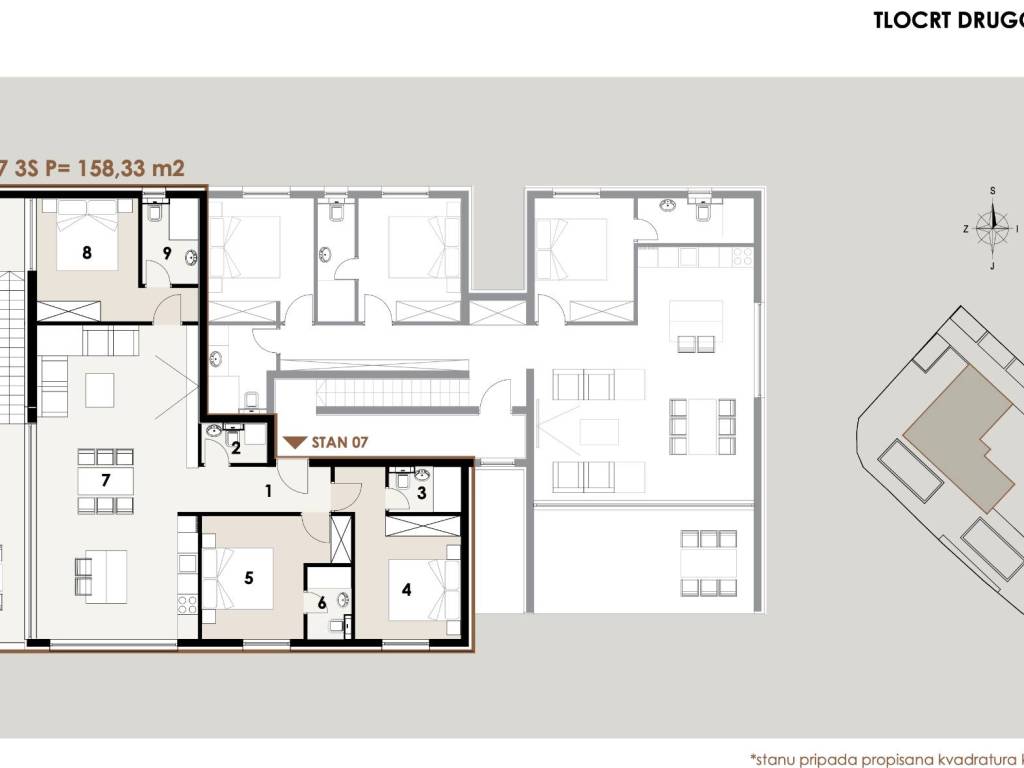 S7 – 2. kat trosoban stan sa krovnom terasom 158,33 m² – 720.000,00 €