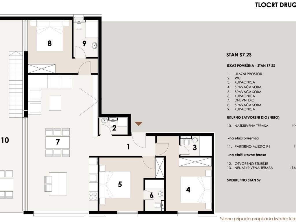 S8 - 2. kat, trosoban stan sa krovnom terasom 157,69 m² – 685.000,00 €
