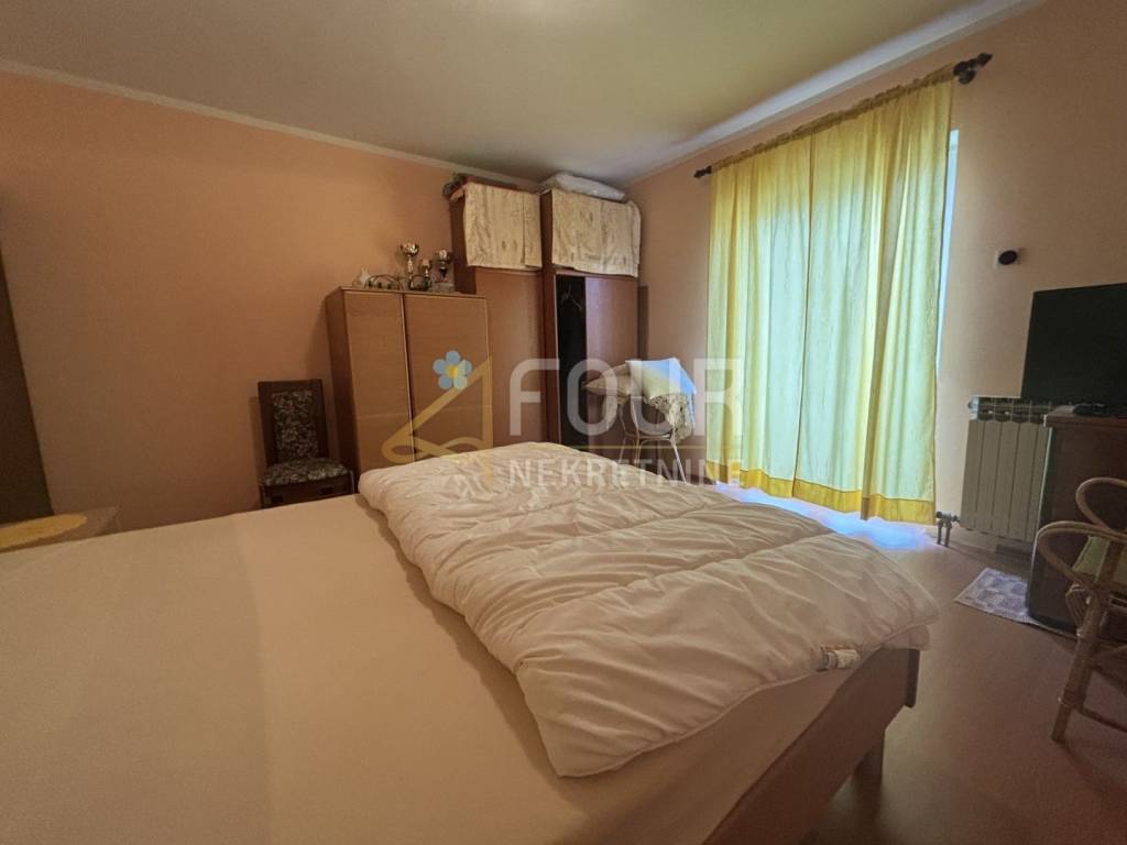 A standalone house of 173 m2 is for sale in Martinkovac, located on a neat and flat plot of 455 m2. The house extends over the ground floor and first floor and is in its original condition, leaving the possibility of complete adaptation to the needs of the new owner. The layout allows for a relatively easy conversion from one apartment to two residential units. On the ground floor, there is a spacious living room, along with an additional living room that can be used as an extra bedroom. The open concept of the kitchen, dining room, and living area provides access to a large terrace from both living rooms. This floor also includes a bathroom and an indoor staircase leading to the first floor. The upper floor consists of four bedrooms, each with access to its own balcony, and a large bathroom with two entrances, a bathtub, and a shower cabin. The layout is functional and ideal for a larger family. The garden is tidy and practical, with three basement rooms behind the house, including a boiler room with a tank for central heating oil. There is also a large garage next to the house, as well as multiple parking spaces. The property is equipped with central heating, air conditioning, a fireplace, and a combination of PVC and wooden carpentry. This property represents an excellent opportunity for a family home or investment in a sought-after location near all amenities and transport connections, with the possibility of flexible space arrangement according to personal preferences.
