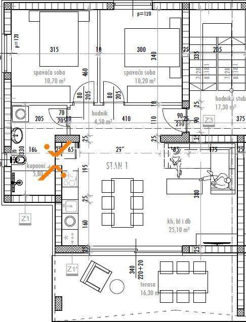 Walls are made of thermal brick blocks, while the 10 cm styrofoam facade insulation ensures excellent energy efficiency.It has electric underfloor heating throughout the apartment and three air-conditioning units – one in the living room and one in each bedroom.