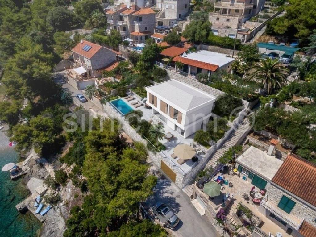 We are mediating the sale of a luxury villa under construction in the first row to the sea on the island of Brac, located in a quiet bay, in one of the most beautiful locations on the island. The villa is being built on a plot of 530 m and will offer 170 m of living space spread over two floors - ground floor and 1st floor. The ground floor will consist of an entrance area, two storage rooms, a toilet, an open-space living room, a kitchen and a dining room that will provide access to a large terrace. The outdoor area will offer a swimming pool, a sundeck, a dining and socializing area, a fireplace and a garden with typical Mediterranean plants. The first floor will have three en-suite bedrooms with private bathrooms and two additional storage rooms. The plot offers a beautiful open view of the sea. The completion of construction and planned move-in is in the summer of 2027. The property is being sold by a legal entity and the listed price does not include VAT. Ownership is in order.