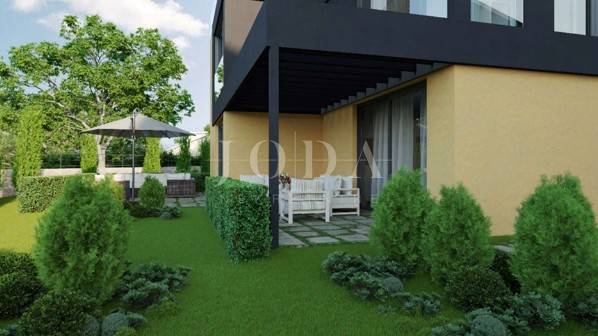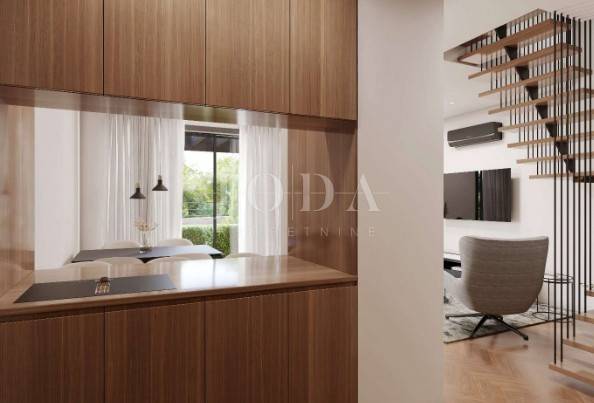 On the ground floor there is a living room with access to the terrace and garden, a kitchen and a bathroom, and internal stairs lead to the first floor where there are two bedrooms, each with its own bathroom. The highest quality materials and equipment are used in the construction and furnishing of the apartments. Completion of construction is planned for next year. The apartments are located in an excellent location, 500 meters from the sea and the city center.