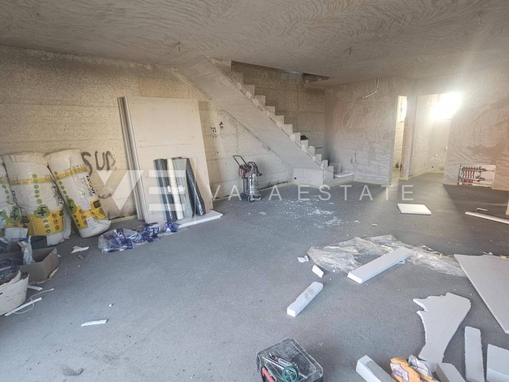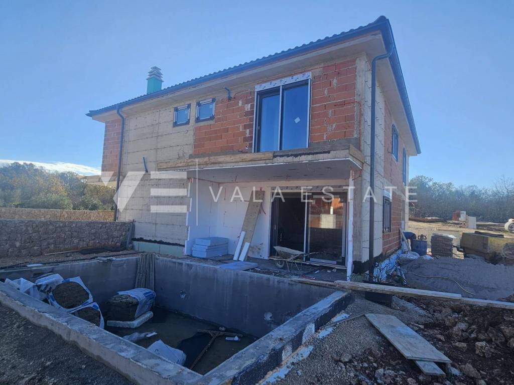 Real estate on the island of Krk, Malinska area - for sale is a new modern semi-detached house in an exceptional location in the vicinity of Malinska, just 200 m from the sea and the beach. The house occupies 140 m2 of living space, which is distributed over the ground floor and first floor. The ground floor has a storage room, bathroom, kitchen with dining area and a large living room with access to a covered terrace. On the first floor, which is connected by internal stairs, there are two bathrooms and three bedrooms, one of which has its own bathroom and access to a balcony with a beautiful sea view. In the garden there is a swimming pool with a sunbathing area and a summer kitchen. Quality materials and equipment were used for construction, including quality flooring and sanitary equipment, multisplit air conditioning in all rooms, underfloor heating, built-in high-quality PVC joinery and security doors. It also has two parking spaces at the entrance to the yard. This beautiful and high-quality modern new building is located in a very attractive and sought-after location, only 200 m from beautiful beaches and not far from the center of the village with all necessary amenities. The property is currently under construction and completion is planned for spring 2026.