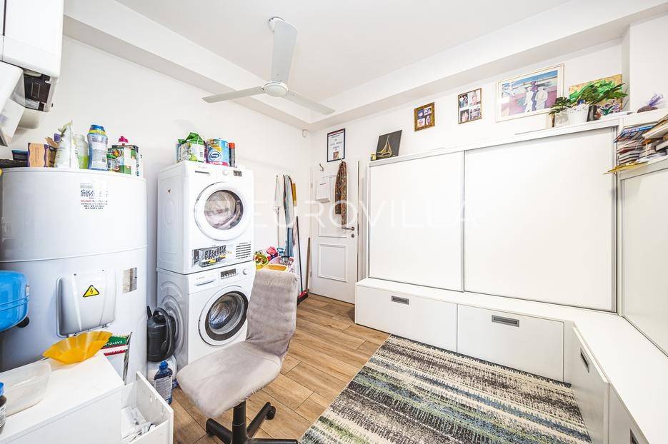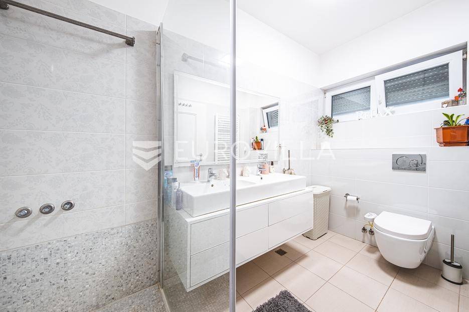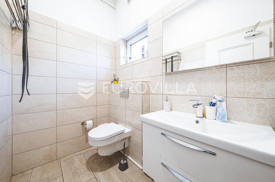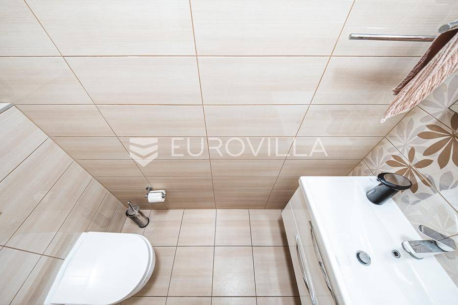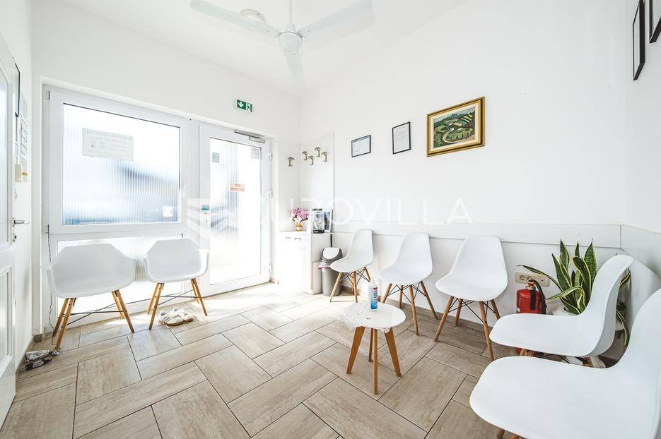 Prizemlje: ulazni prostor, hodnik, 2 spremišta, dnevni boravak s blagovaonom, kuhinja, vešeraj, gostinjski WC, spavaća soba s vlastitom kupaonicom, terasa i vrt u stambenom dijelu te ulazni prostor/čekaonica, 3 WC-a i ordinacija 28 m2 u poslovnom dijelu.