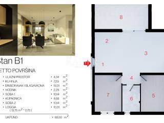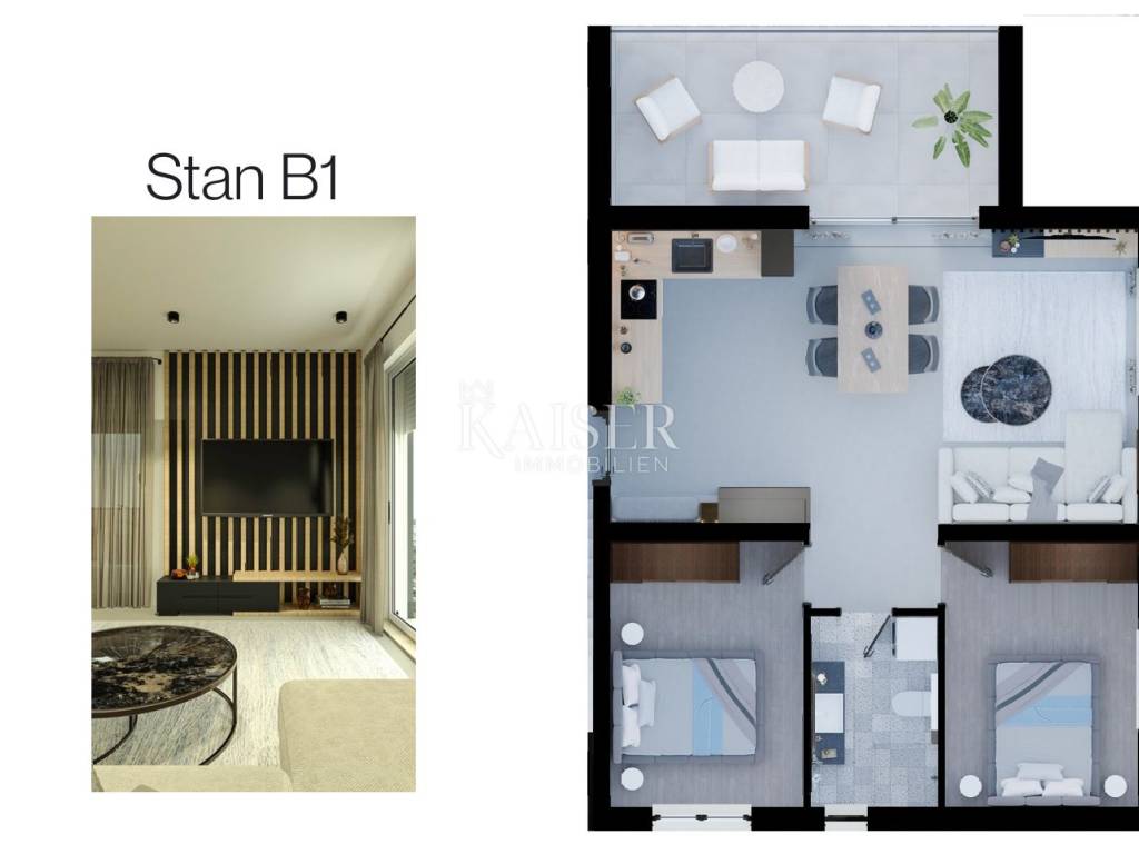 Kaiser Immobilien presents: Spacious two-bedroom apartment with loggia and sea view, Rogoznica In the heart of Dalmatia, in the picturesque and increasingly sought-after town of Rogoznica, is this beautiful, modern two-bedroom apartment. As part of a new residential complex, just 400 meters from the sea, this property offers the perfect blend of functional design, high-quality materials and a beautiful view, making it an ideal opportunity for family life, vacation or as a top investment. ABOUT THE PROPERTY: The apartment has been carefully designed to maximize space and emphasize an open and bright ambiance. With a total gross area of 68.50 m², it offers everything needed for a comfortable stay for a larger family or group. APARTMENT LAYOUT: Entrance area / Hallway: 4.34 m² Kitchen: 7.29 m² Living room and Dining room: 19.31 m² Hallway (sleeping area): 2.29 m² Bedroom 1: 10.14 m² Bathroom: 4.68 m² Bedroom 2: 10.14 m² Loggia: 10.31 m² The layout emphasizes the "open-space" concept, connecting the kitchen, dining room and living room, while ensuring privacy with two separate bedrooms and a spacious loggia for outdoor relaxation. KEY FEATURES AND BENEFITS: New construction in Rogoznica: Be the first owner of an apartment in a new, modern building with a sea view. Private loggia (10.31 m²): Spacious loggia with access from the living room, ideal for enjoying the view and fresh air. High-quality materials: High-quality materials are used in the construction and furnishing, ensuring durability and value. Functional layout: Ideal for a family, vacation or as a highly profitable investment for tourist rental. Customization: Buyers are offered flexibility and the ability to choose certain finishing materials during construction. Parking: Secured parking space. LOCATION: Rogoznica is one of the most beautiful and protected bays on the Adriatic, known for its crystal clear sea, beautiful beaches and the famous Marina Frapa. The proximity of Split, Šibenik and the airport makes it an extremely accessible and sought-after destination. Do not miss the opportunity to become the owner of this beautiful property in one of the most attractive locations on the Dalmatian coast! The agency commission for the buyer is 3% + VAT and is paid in the case of purchasing a property, upon conclusion of the first legal act. Viewing the property is possible only with the prior signing of a real estate brokerage contract. If you would like to visit the property in person, please contact: Joško Bašić E-mail: josko@kaiser-immobilien.hr Tel: +385-91-511-2993 http://kaiser-immobilien.hr/
