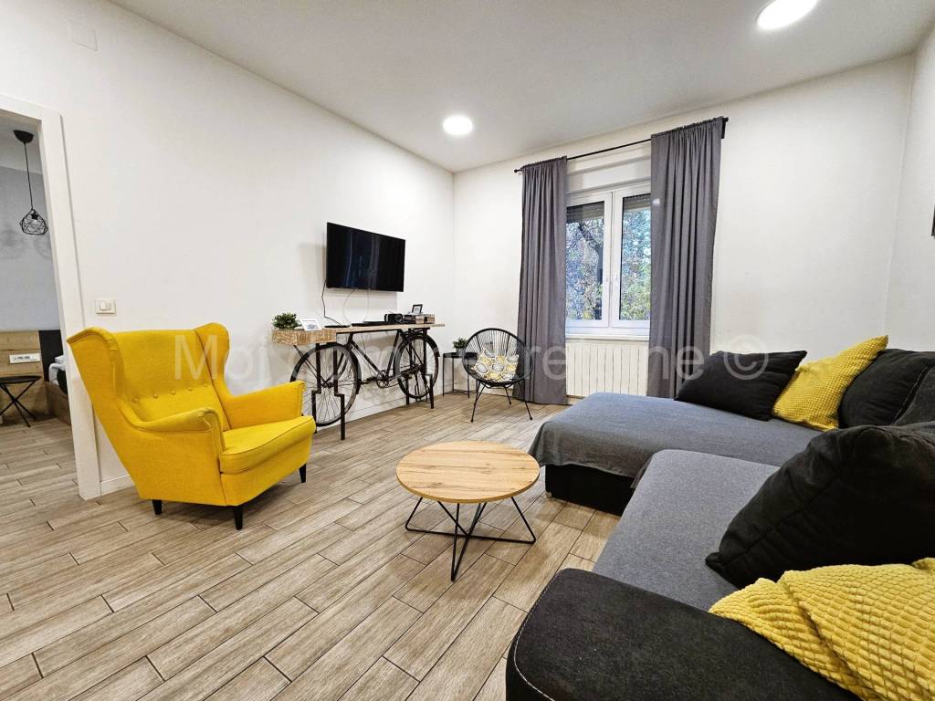 Prodaje se uređen 3soban stan s balkonom u visokom prizemlju zgrade. U je kompletno uređen 2018.godine kada su uređeni podovi, stavljena PVC stolarija, protuprovalna vrata te su promijenjene sve instalacije u stanu (voda, struja, plin). Stan je opremljen klima uređajima. Prodaje se kompletno namješten. Pripada mu spremište u podrumu zgrade. Zgrada je građena 1938.godine i nalazi se u blizini nekoliko osnovnih i srednjih škola, nekoliko vrtića, bolnice i tramvaja. Udaljen je par minuta pješice od Trga bana Jelačića. Stan je trenutno podijeljen u dvije stambene jedinice (apartmana) koje se koriste u svrhu dnevnog najma. Zgrada je poslije potresa dobila zelenu naljepnicu.