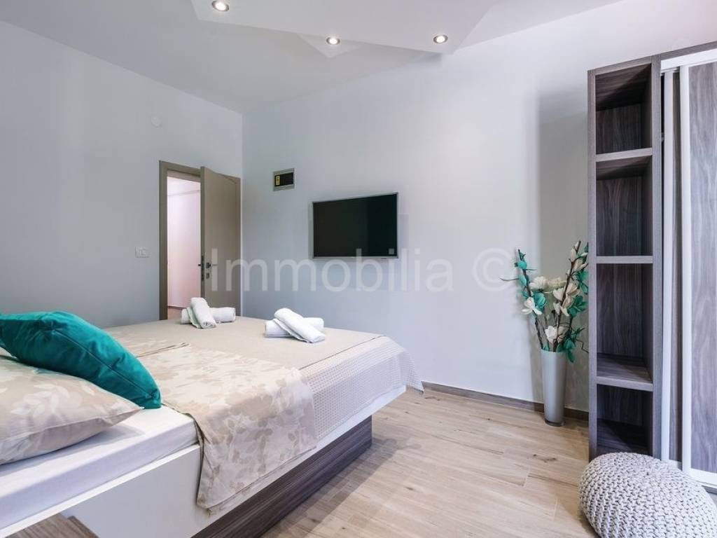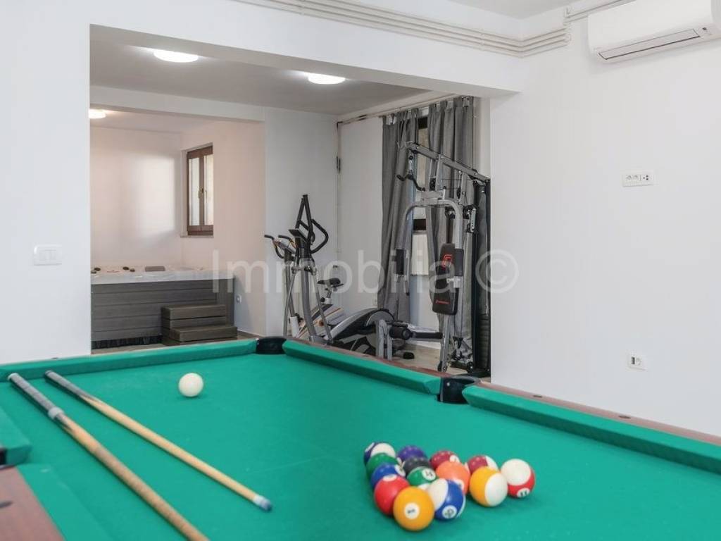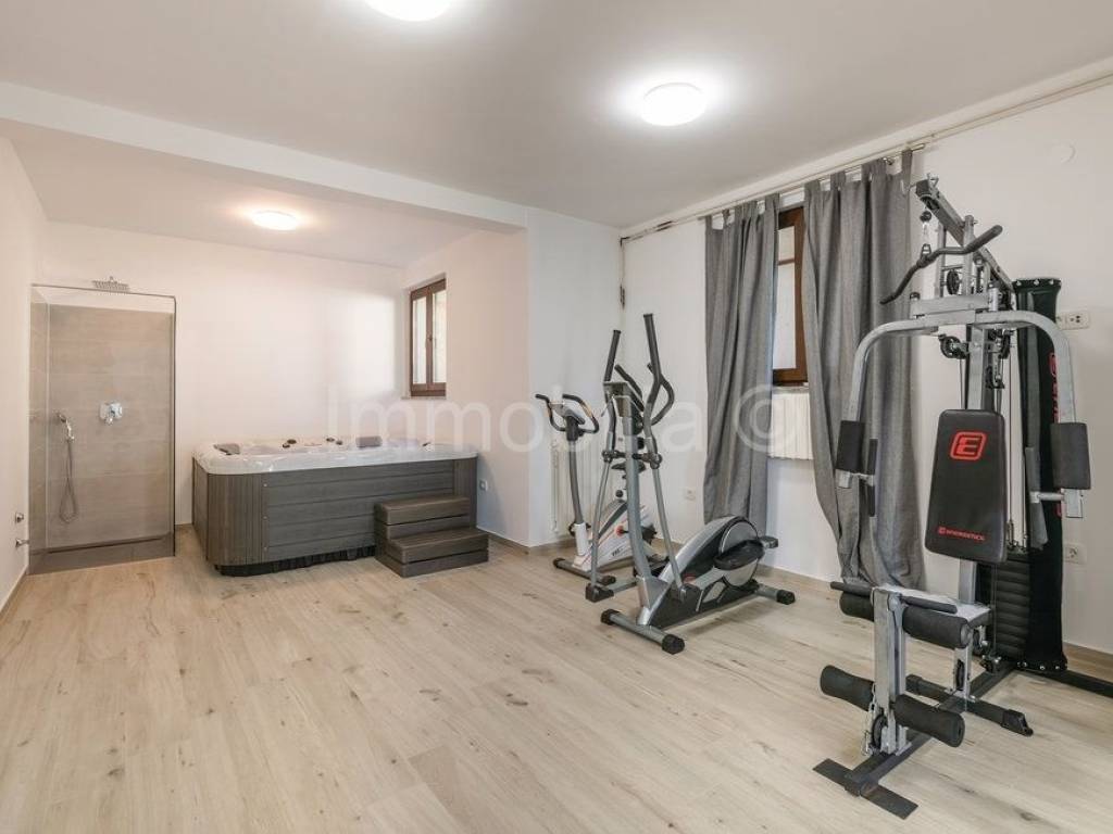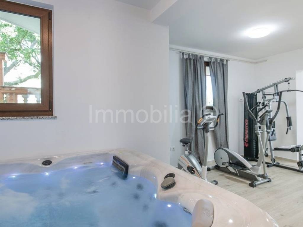 Kuća se sastoji od 7 novouređenih soba, svaka ima vlastitu kupaonu i terasu, jednu zajedničku prostoriju sa jacuzziem, tušem, spravama za vježbanje, stolnim nogometom. Kuća ima i saunu i vanjski bazen sa jacuzziem od 40m2.
