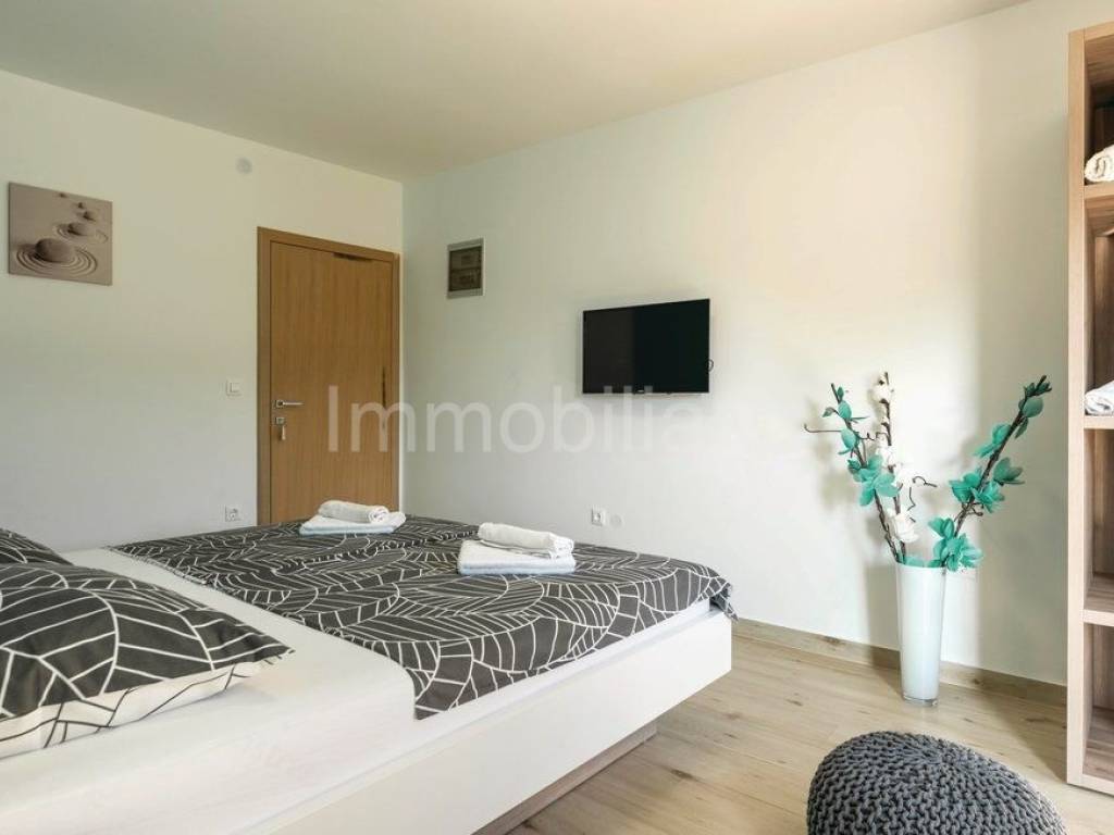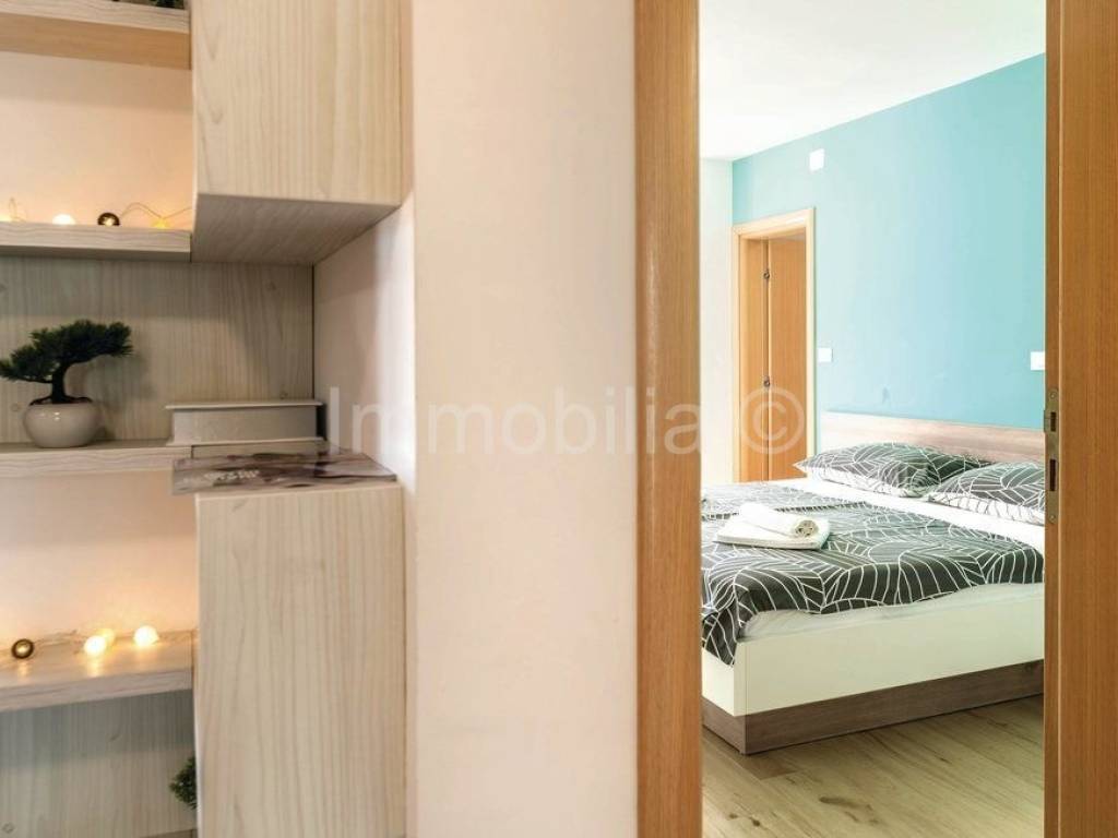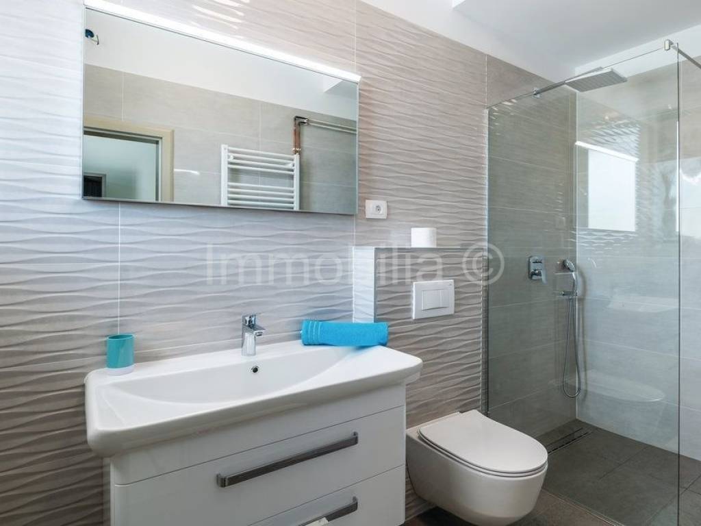 Na gornjem katu se nalazi komotni dnevni boravak sa kuhinjom i blagovaonom, 2 spavaće sobe, 1 kupaona i 1 wc, te u potkrovlju su još 2 sobe i 1 kupaona.